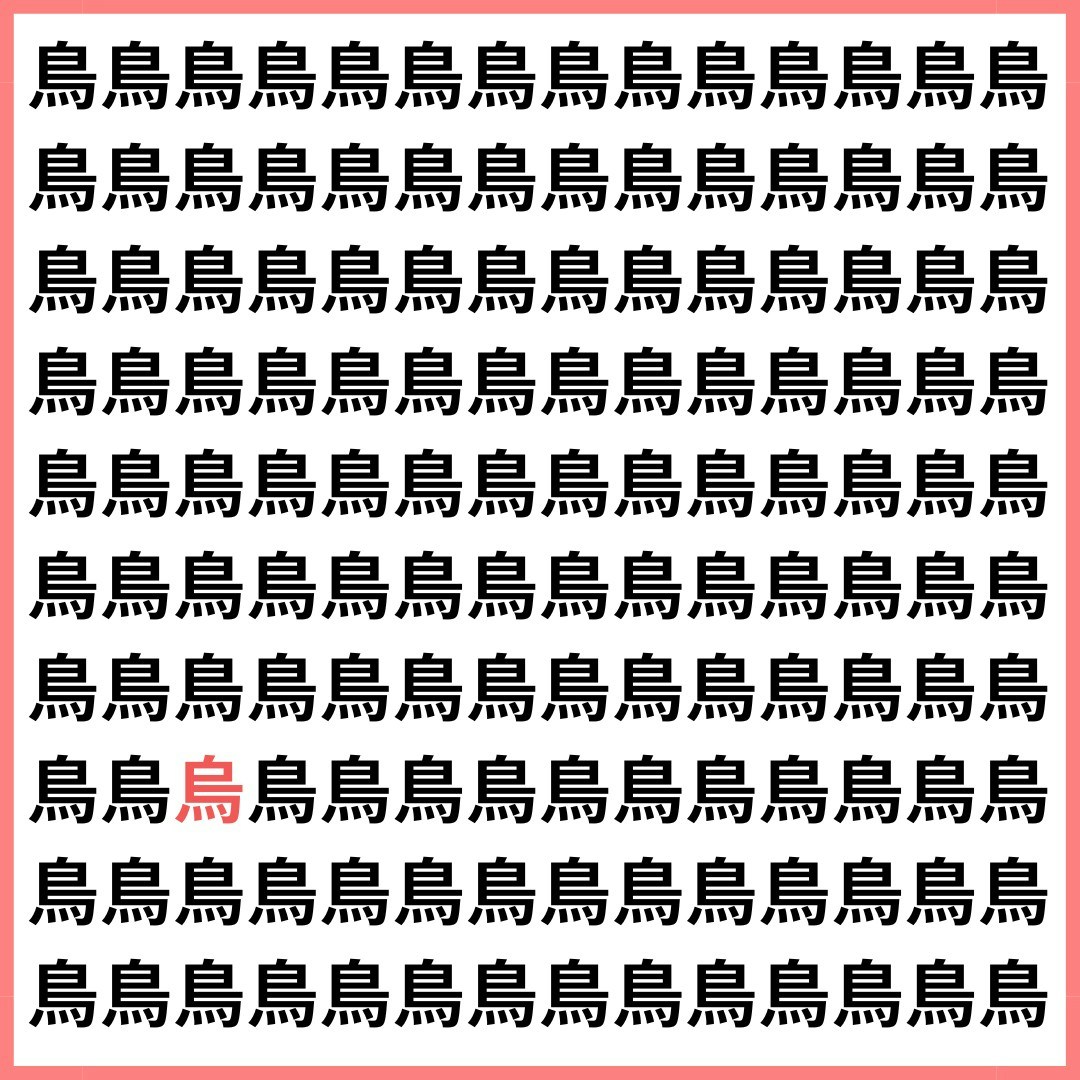 たくさんの「鳥」の中に、1文字だけ違う漢字が混ざっています。