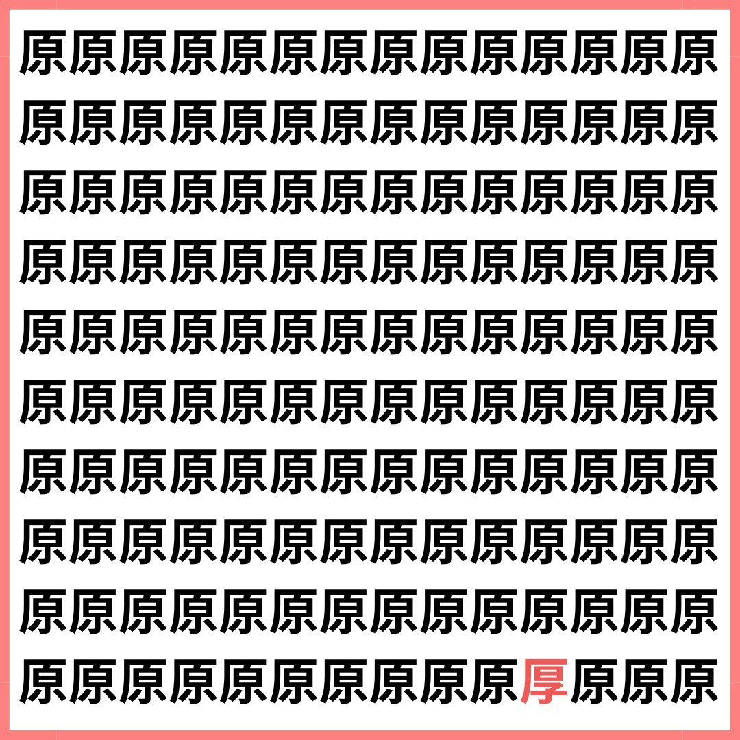 たくさんの「原」の中に、1文字だけ違う漢字が混ざっています。