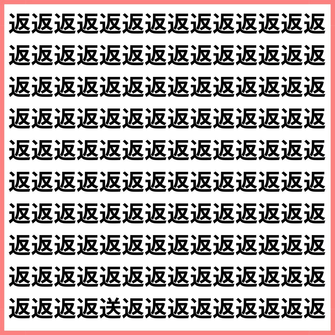 たくさんの「返」の中に、1文字だけ違う漢字が混ざっています。