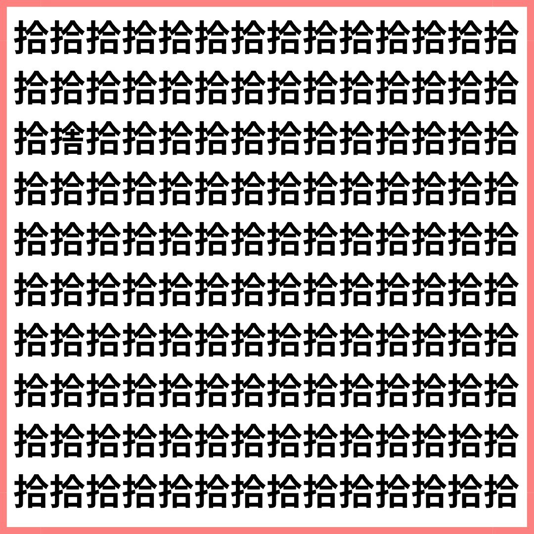 たくさんの「拾」の中に、1文字だけ違う漢字が混ざっています。
