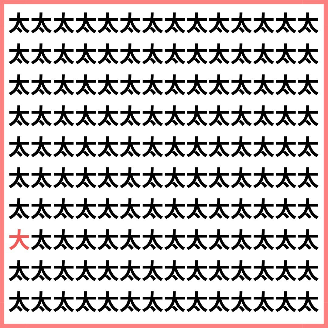 たくさんの「太」の中に、1文字だけ違う漢字が混ざっています。