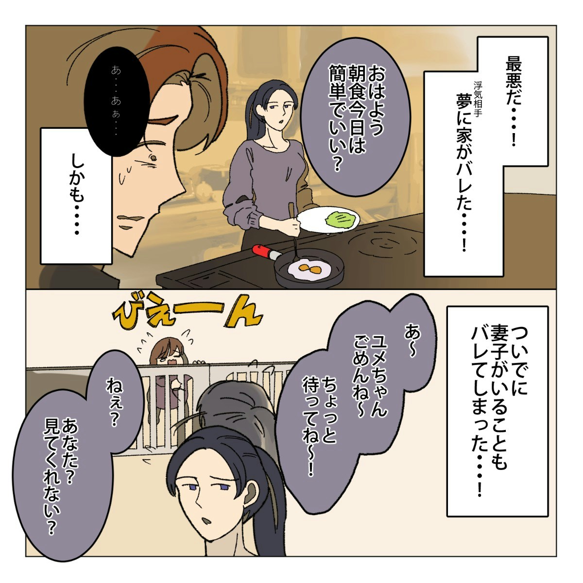 妻も愛人も裏切った男性の末路により、恋愛と結婚のあり方について改めて考えさせられる本作は、家事しないと死ぬ旦那(@kodomodannashinu)さんのインスタグラムにて掲載中の作品です。