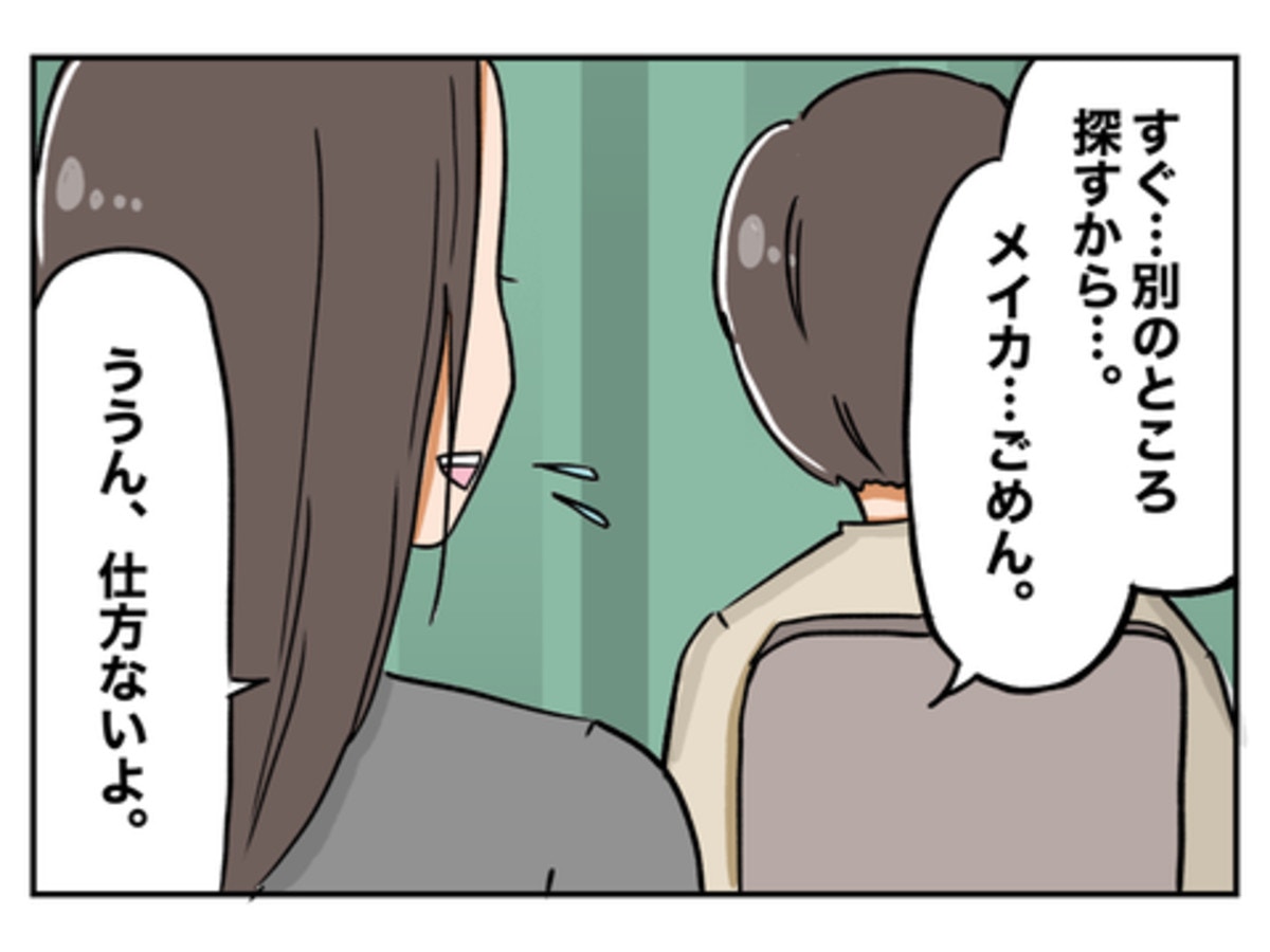 偶然、メイカとすみれ、それぞれの夫同士が会います。そして先日、給料が低いと責められたメイカの夫は、すみれの夫に相談。