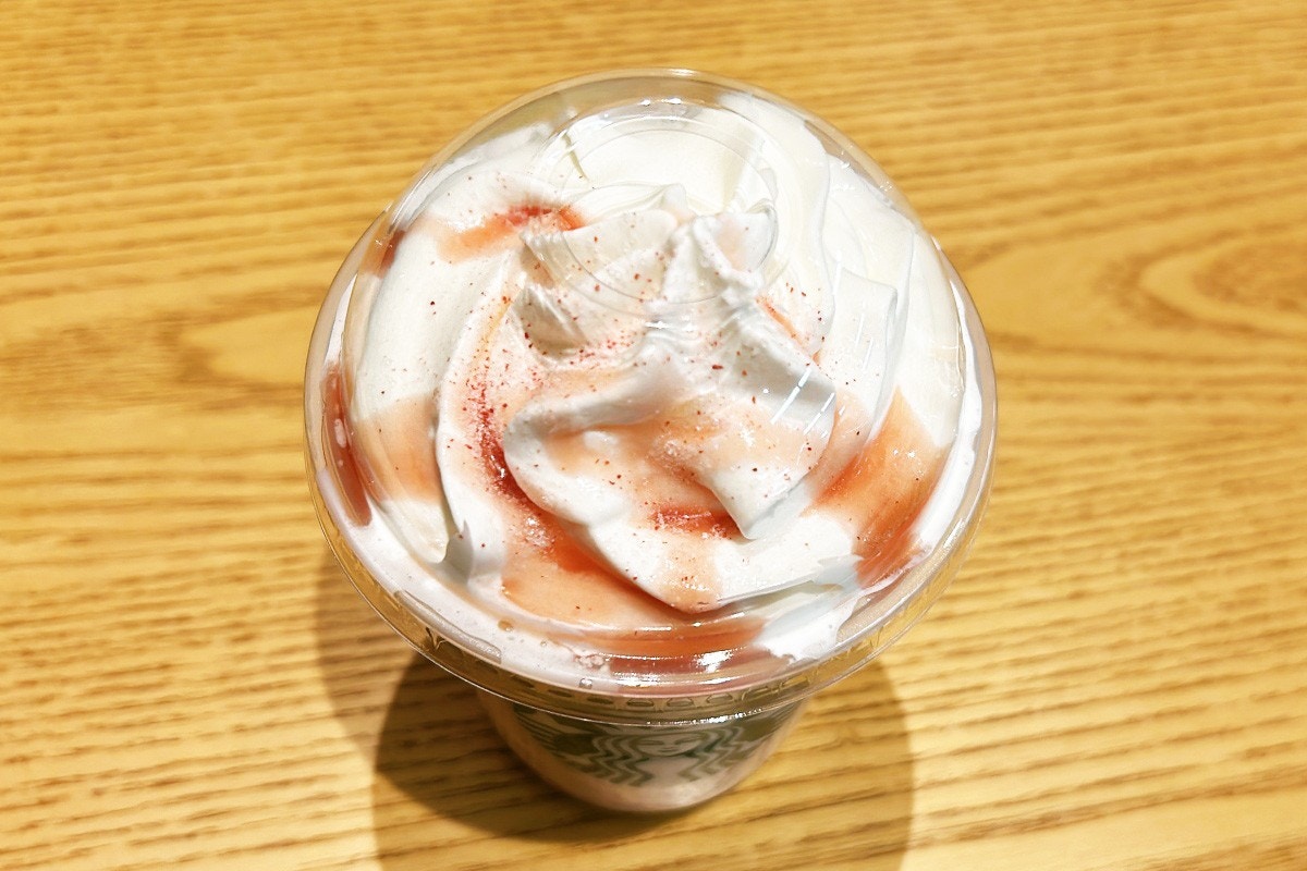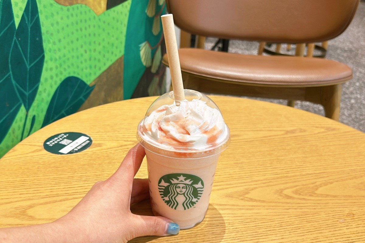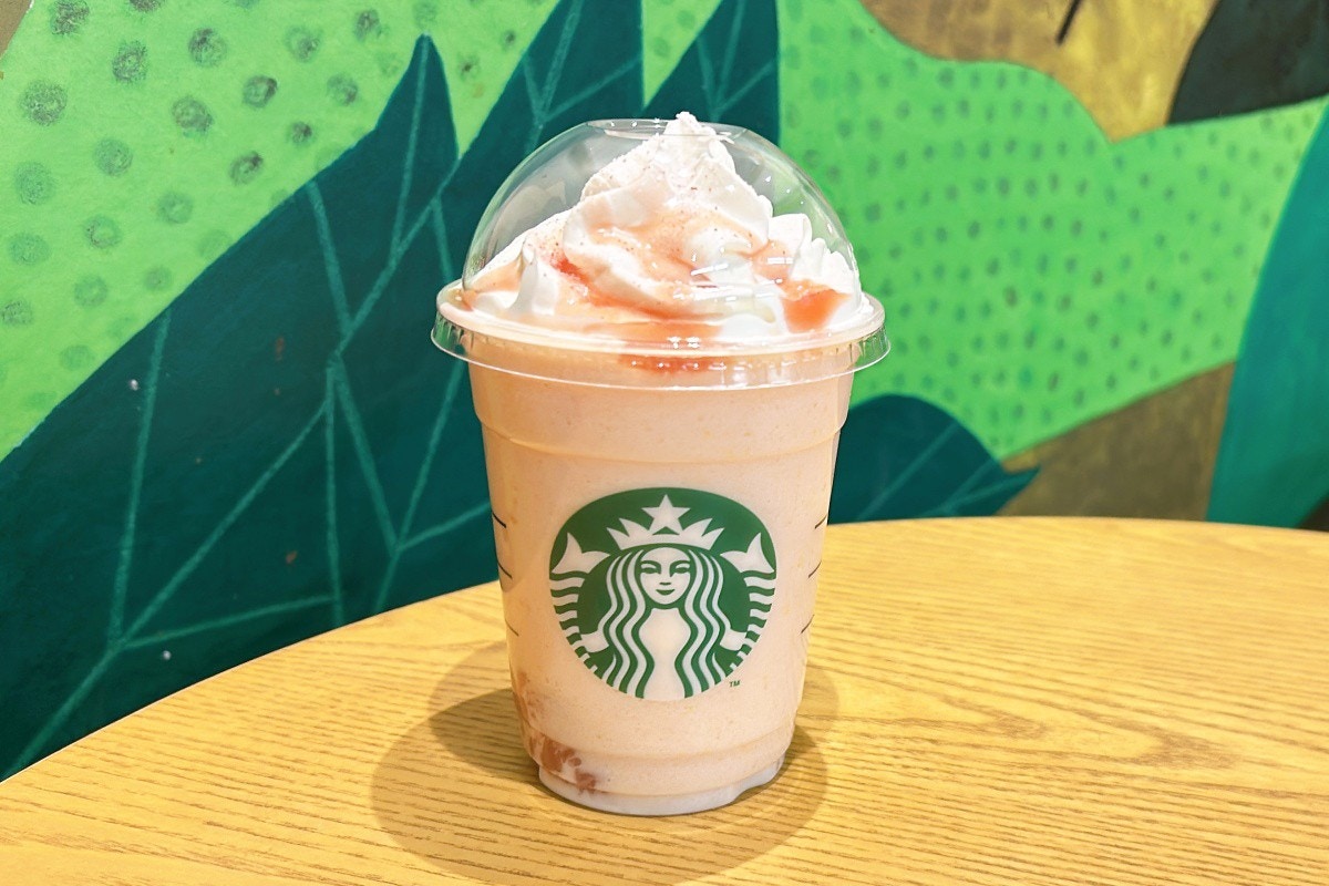 2月15日から3月11日までの期間限定で「白桃と桜わらびもち フラペチーノ」が登場!まだ間に合いますよ〜!