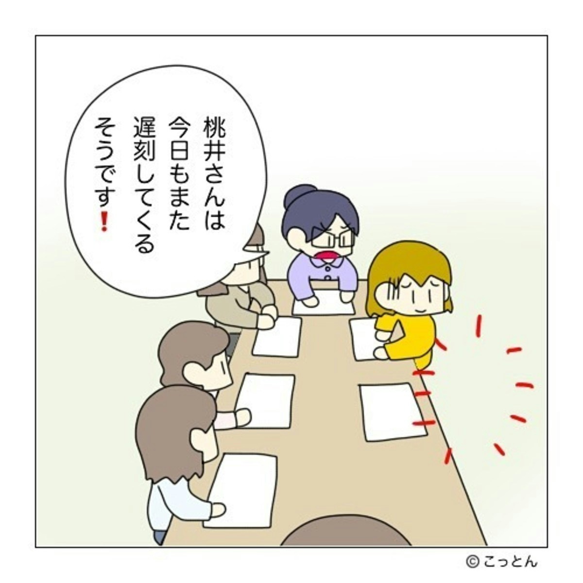 役員会に遅刻してきた・桃井さん。会長が、激しく責めます…。