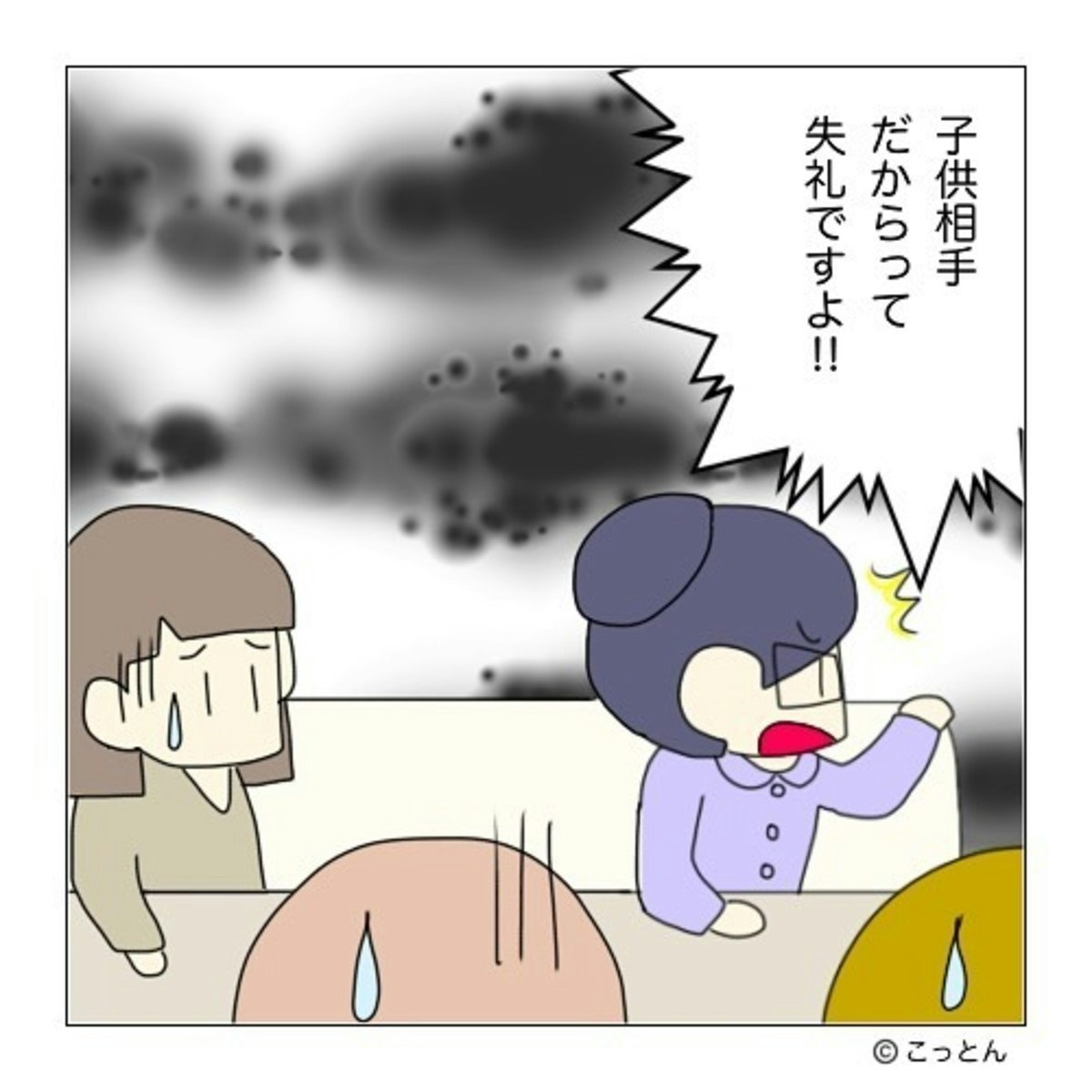 子ども会の役員たちが待つランチ会のお店に着いた主人公・山吹さん。そこで会長・べき子さんが一緒に連れてきた姪っ子が店員とぶつかり泣いてしまいました。「ごめんね」と謝る店員の言葉に、べき子さんはすぐに反応。彼女が店員に注意した言葉に山吹さんや役員たちはあ然とします…。