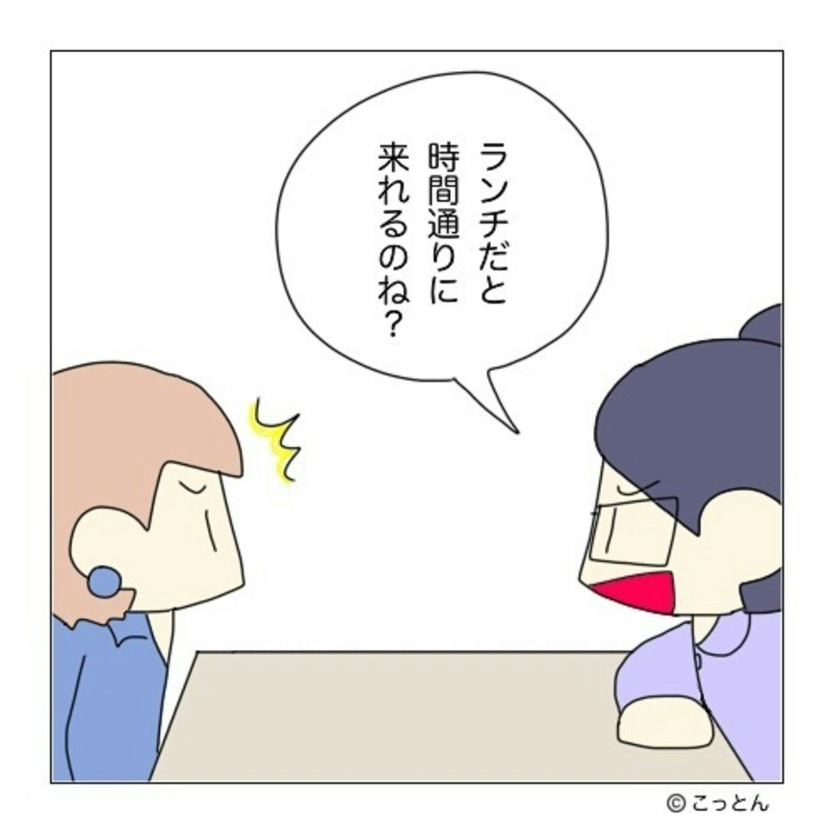 主人公・山吹さんは、子ども会役員たちと一緒にランチ会をしているところ。会長・べき子さんが、いつも役員会に遅刻してくる桃井さんに嫌味のような質問をし始めました。彼女は、桃井さんが平日に子どもと出かけている姿を見たとも言いはじめ、桃井さんは子どもの事情を話すことに…。