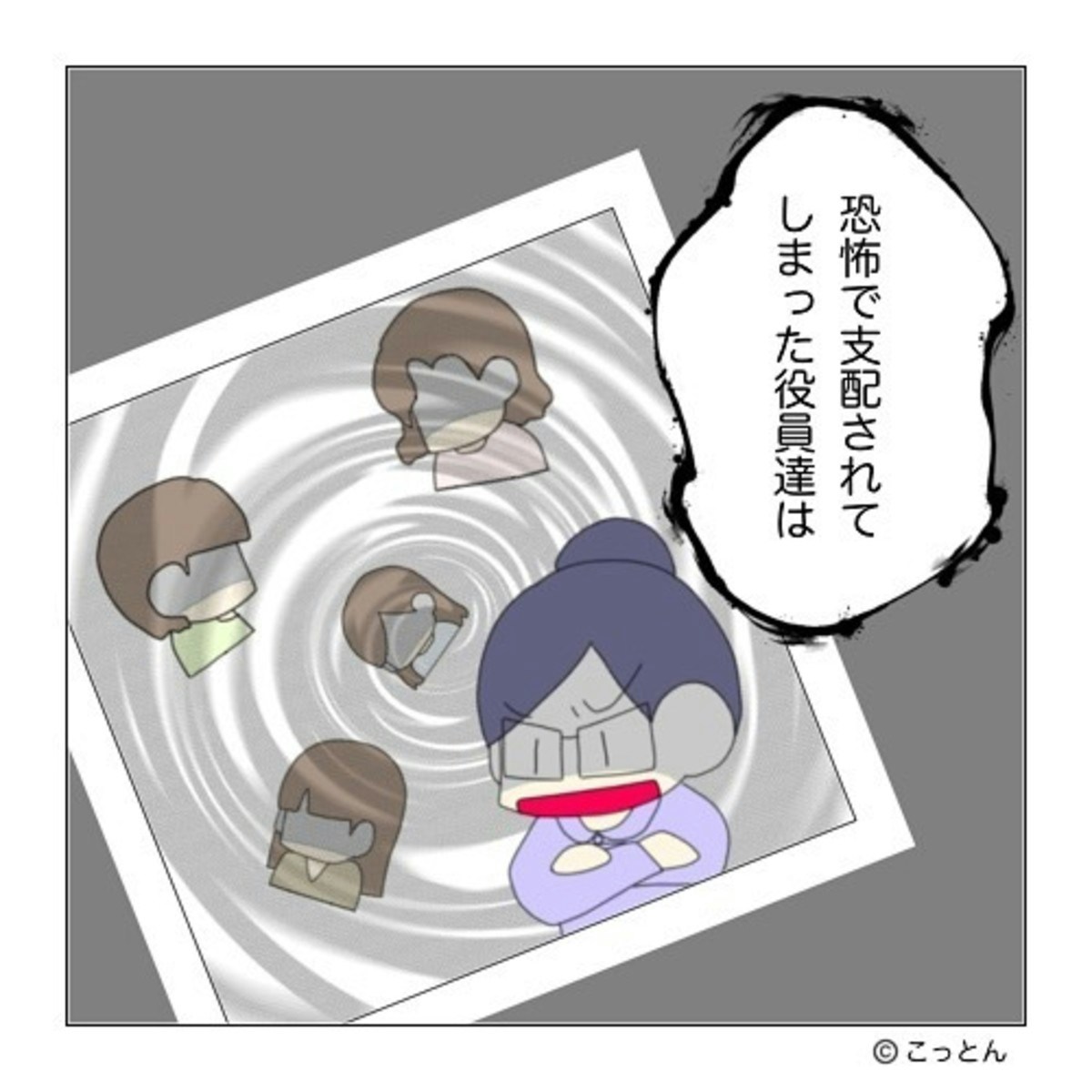 他の役員の意見を聞かず「例年通り」と言い続けるべき子さんに対し、役員メンバーは波風立てないために反論しなくなっていきます。さらに、家庭の事情で役員会に遅刻した人にも厳しい言葉をかけ、周囲の人はどんどんべき子さんから離れていきます。