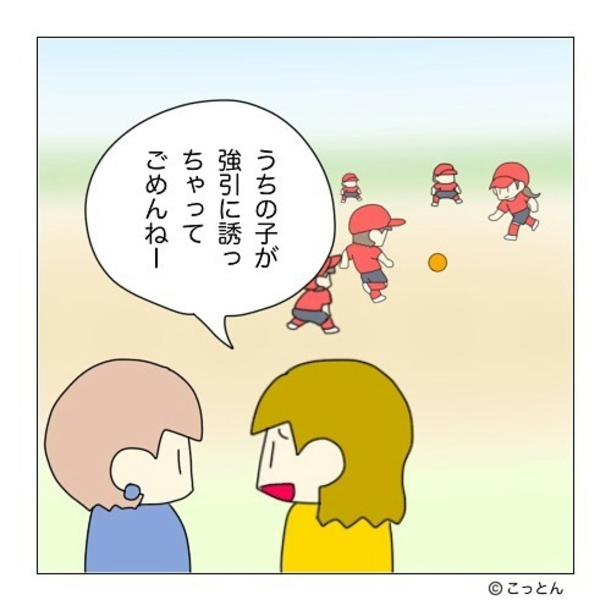 今日のフットベースボールの体験、山吹さんのお子さんが、桃井さんのお子さんを誘ったのですね。