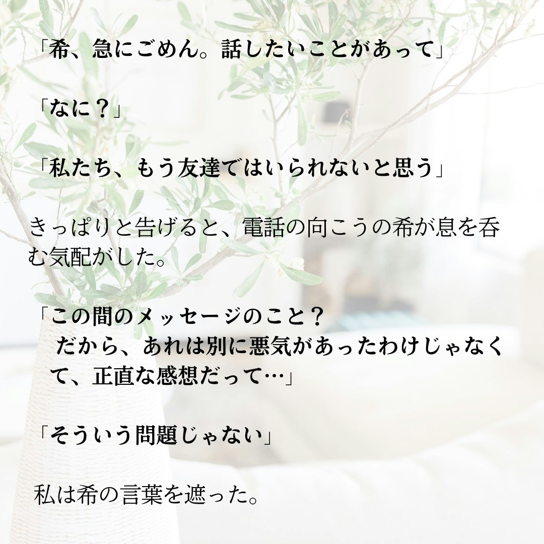 嫉妬心で相手を攻撃する人との決別を描く作品