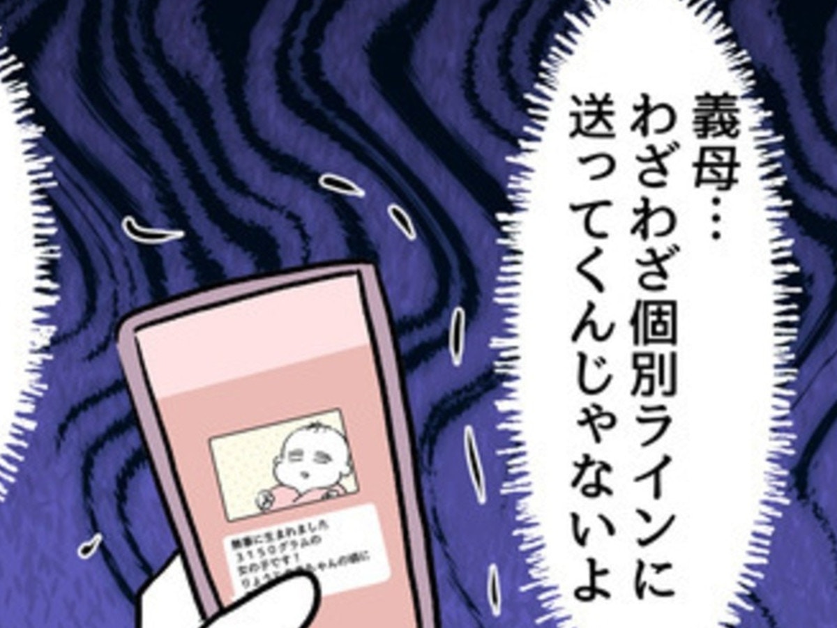 義母から送られてきた義妹の出産報告メール。食事中のキリコさんの顔が曇ります。