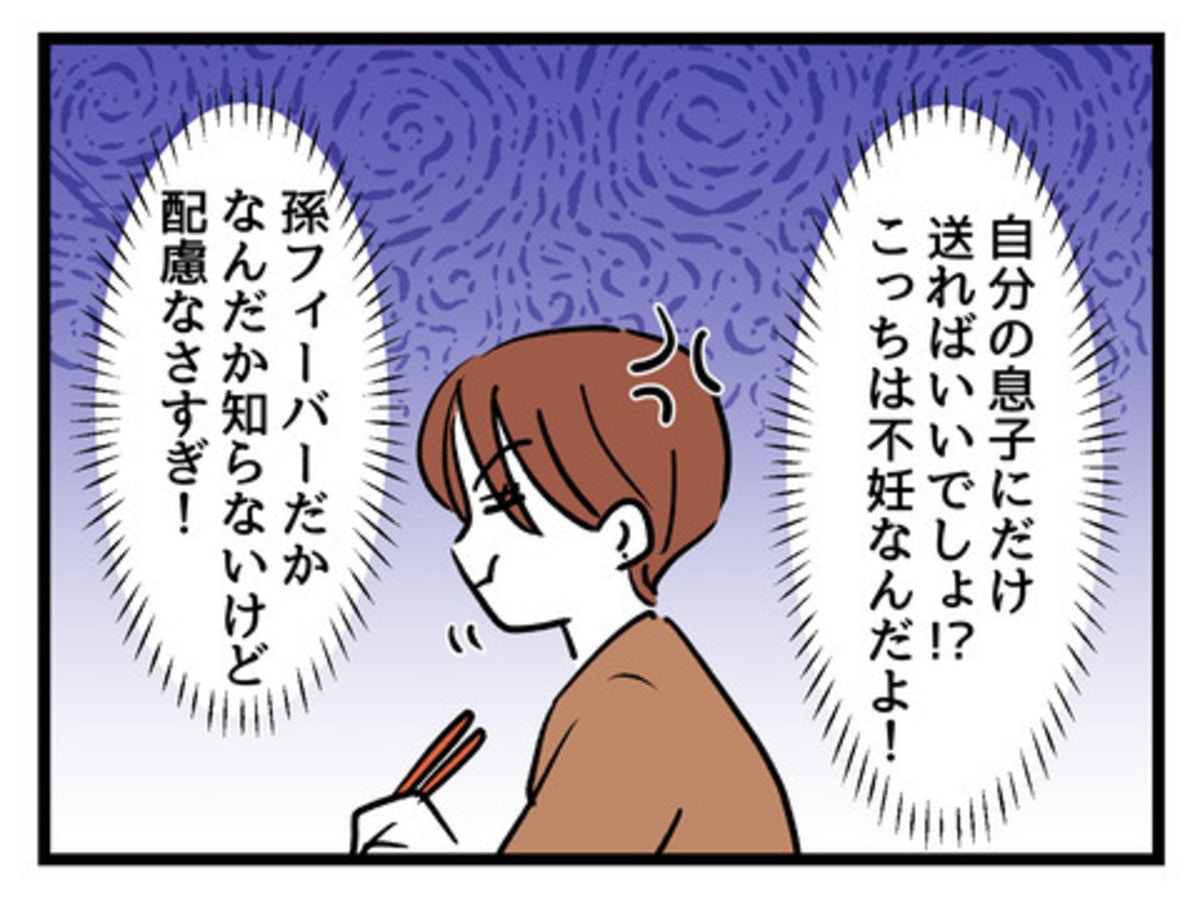 義母からきた、義妹の出産報告。妊娠がうまくいかないキリコさんは、なんて配慮がないんだと怒り出してしまいます。タイミング法は全敗。もう人工授精という選択肢も考え始めているようです。