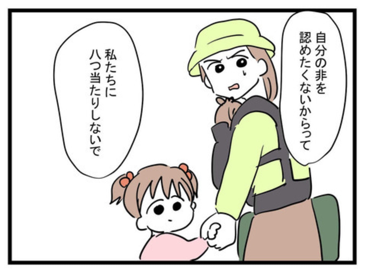 いつも、自分の非を認めず、責任転嫁をしてきた、すぐる。かすみさんは、自分に対して向けられる八つ当たりは、ずっとがまんしてきました。しかし、子どもにまでそれを向けることは、許しません。