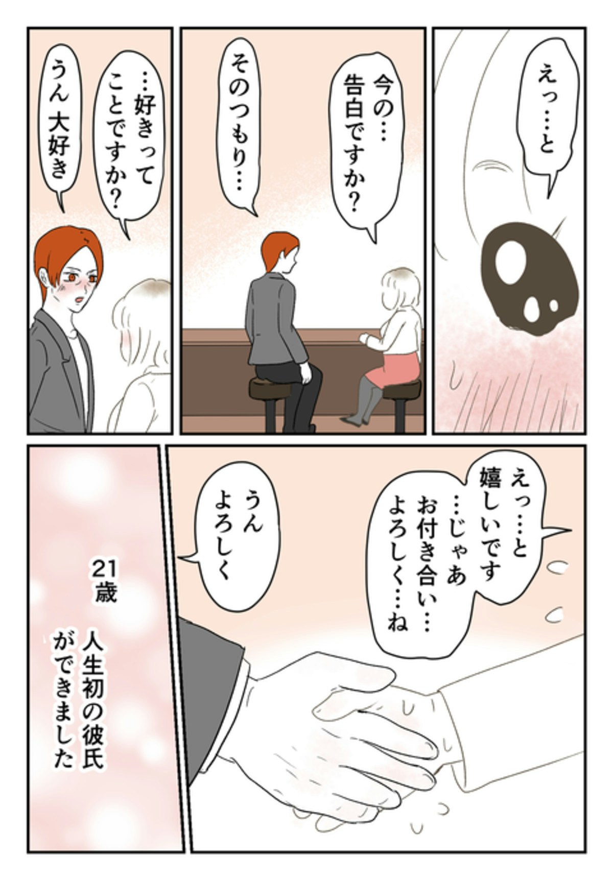 モトさんは10歳年上で、出会ったばかり…尾持さんはそう言いましたが、「本気で付き合いたいから」と、モトさんに告白されます。こうして、尾持さんに人生初の彼氏ができたのです。