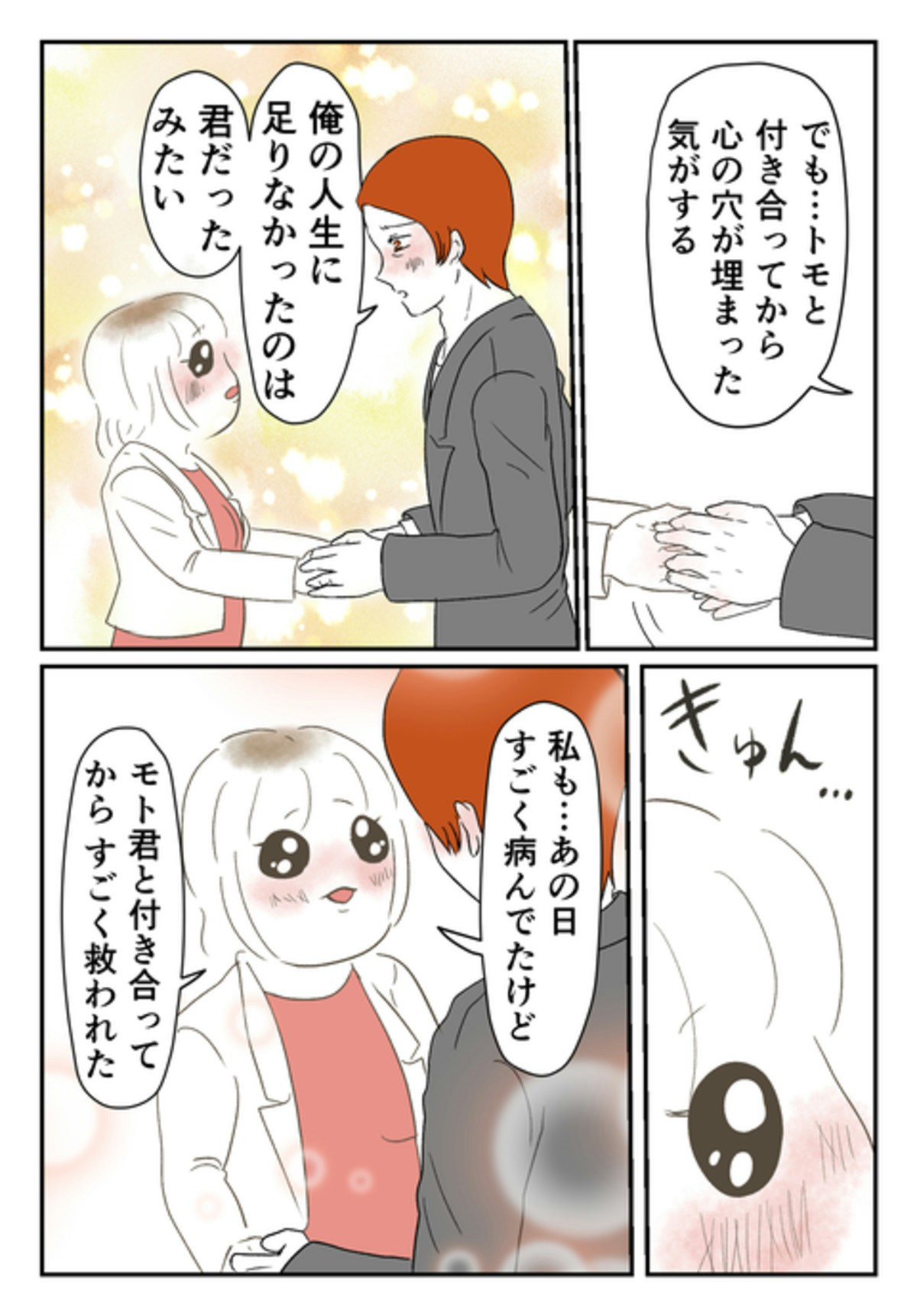 尾持さんと出会ったことで、「心の穴が埋まった」というモトさん。尾持さんも、モトさんとの出会いで心が救われたのでした。そして、2人は順調に交際を続け、モトさんの実家にも訪問することに…。モトさんは、結婚したら実家を出て「一緒に住もう」と言いました。