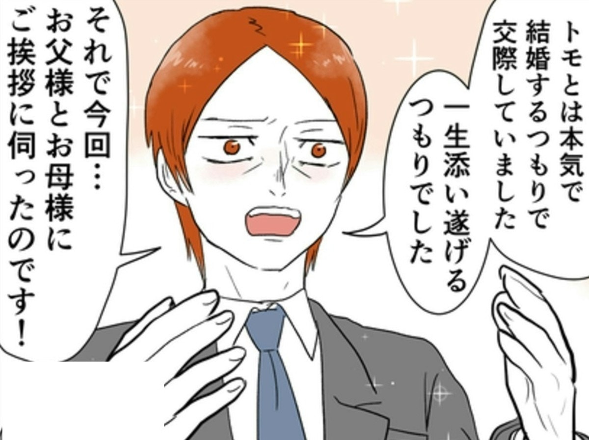 突然、訪ねて来た、モトさんと両親。モトさんは、「自分が独身と偽って、尾持さんと交際していた」と、尾持さんの両親に告げます。出会う順序がちがっただけで、深く尾持さんのことを愛していると言うのです。