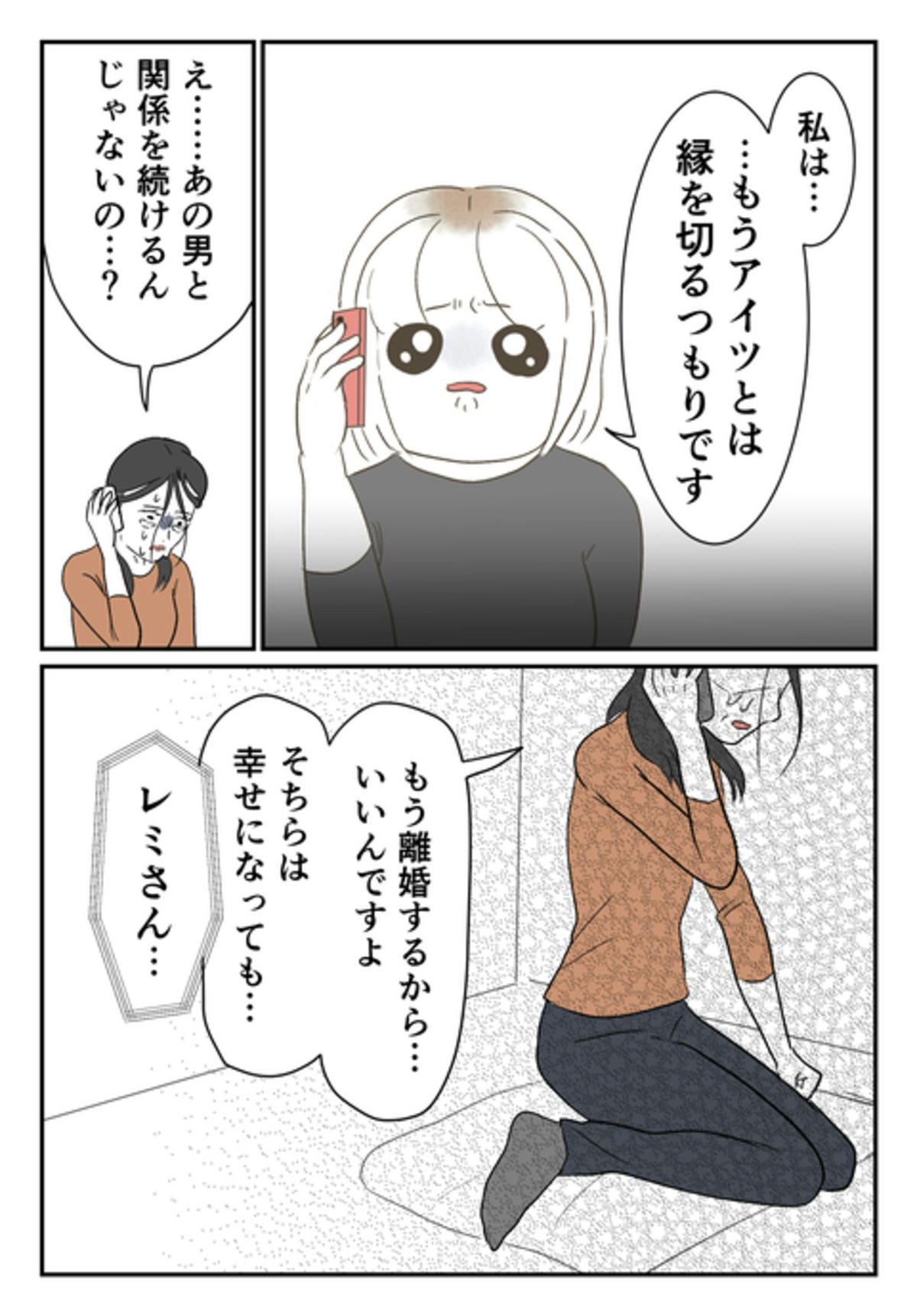 どんなにひどいことをされても、「モトさんを愛していた」というレミさん。モトさんの真の顔を知った尾持さんは、「モトさんと縁を切る」と宣言します。