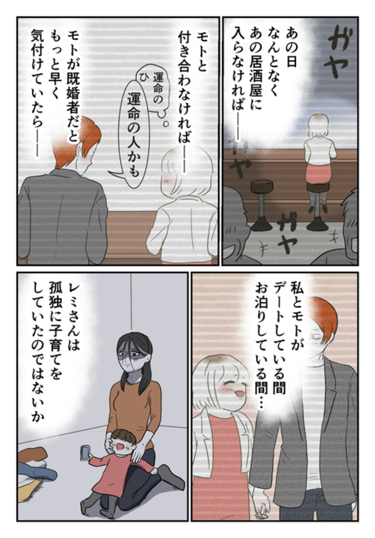 知らなかったとは言え、一つの家庭をこわしてしまった事実は残る…尾持さんは、そう自責の念にかられます。自分とモトさんが一緒にいるころ、レミさんはどんな気持ちで過ごしていたのか…。尾持さんの心の中を、そんな考えがうず巻きます。