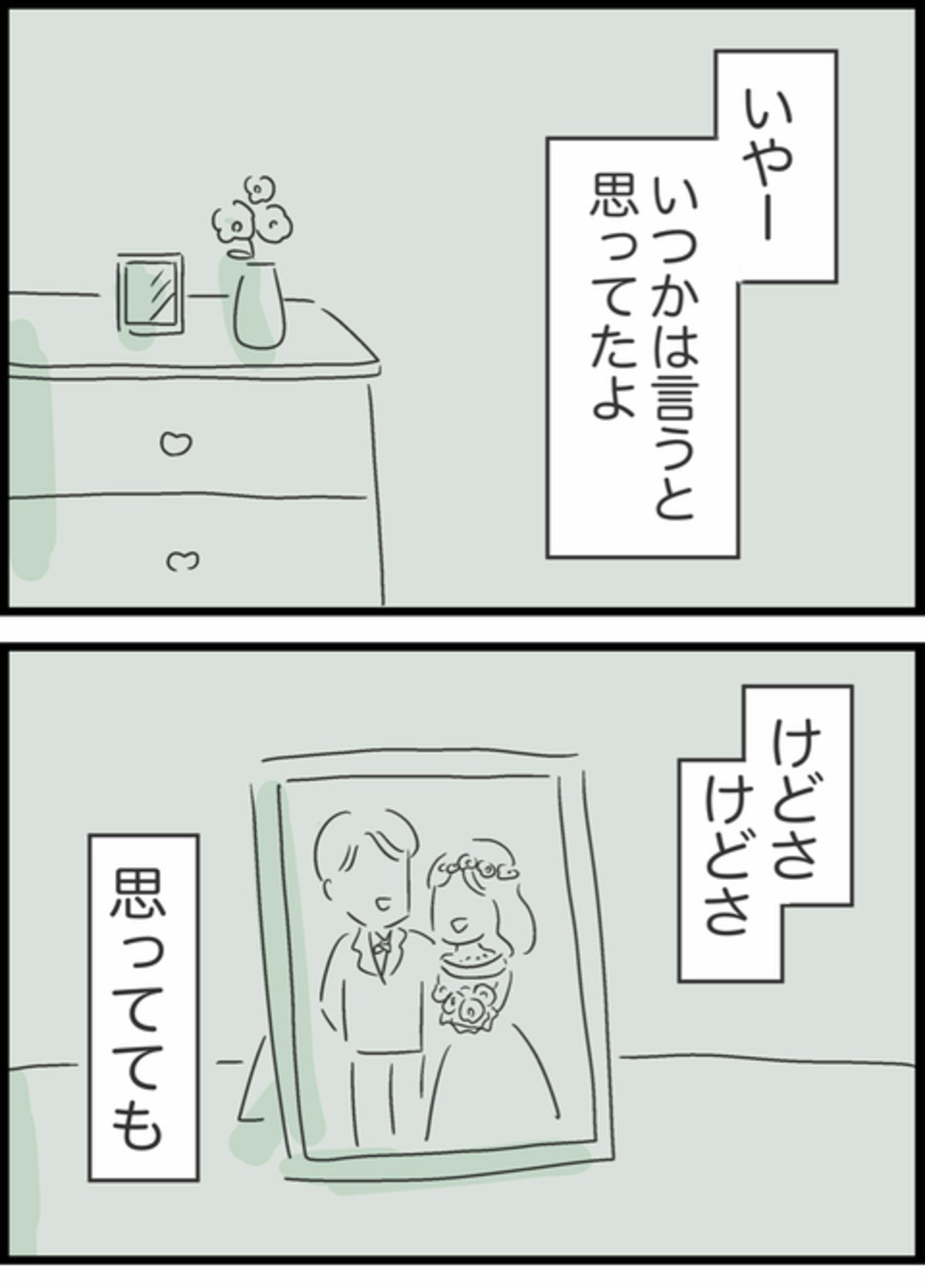 ようこの気持ちを理解しようと歩み寄るしょうた。そしてようこも、少しずつ相手を信じ直す努力を重ね、今では落ち着いた日々を取り戻しつつあります。ただ、ようこの引き出しには今も離婚届が残されています。それは、自分の気持ちに嘘をつかないための「お守り」だそうです。