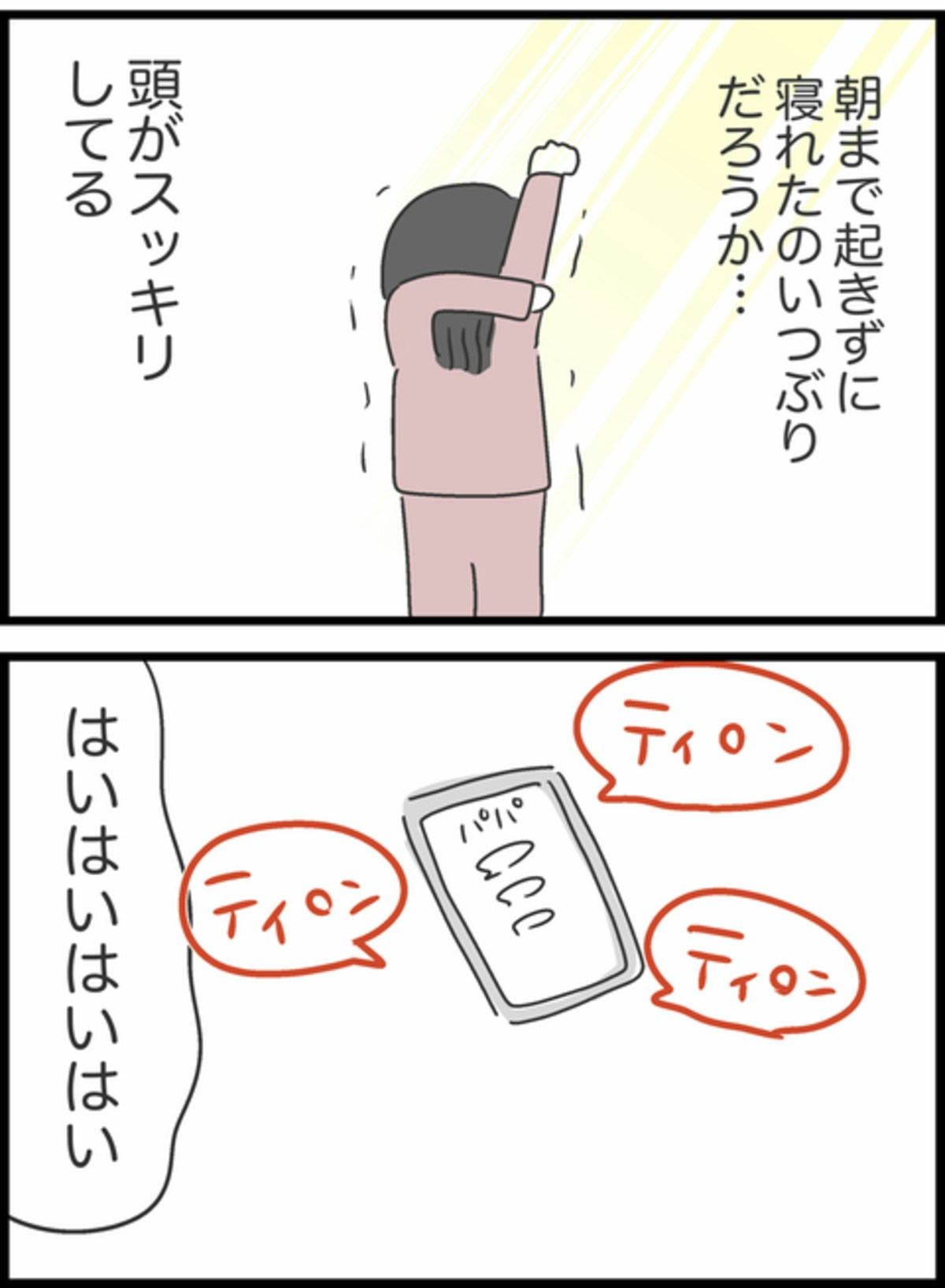 1日ゆっくり休めたおかげて体調も回復したようこ。しかし、しょうたからのライン通知は鳴りやまず…。なんでもようこに聞かないと分からないのですね。