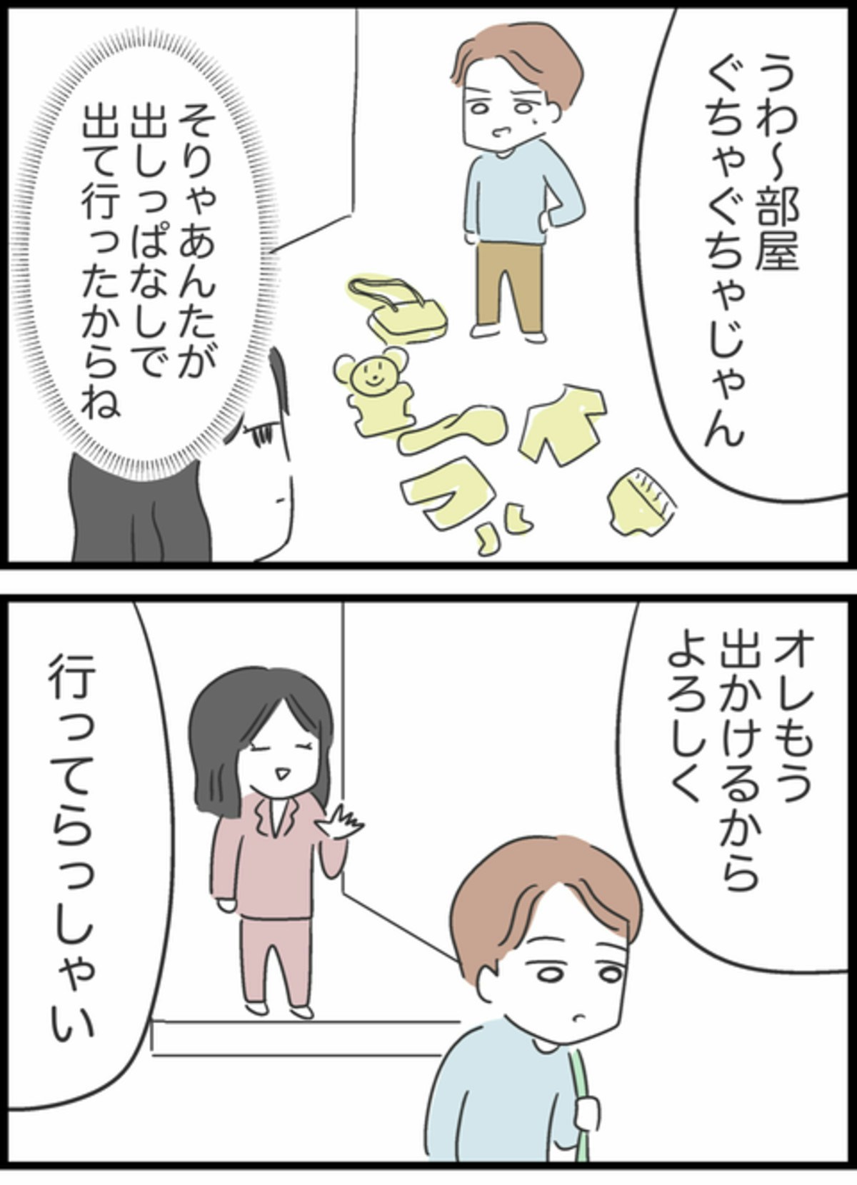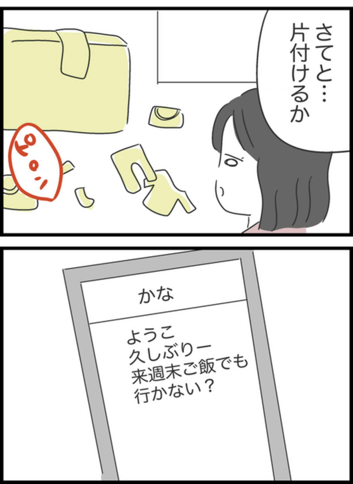 自分が散らかして実家に帰ったのにも関わらず、部屋がぐちゃぐちゃだと文句をいうしょうた。それを片づけるわけでもなく、野球に行ってしまいました。そんな時、ようこのラインに友人からご飯のお誘いがきました。