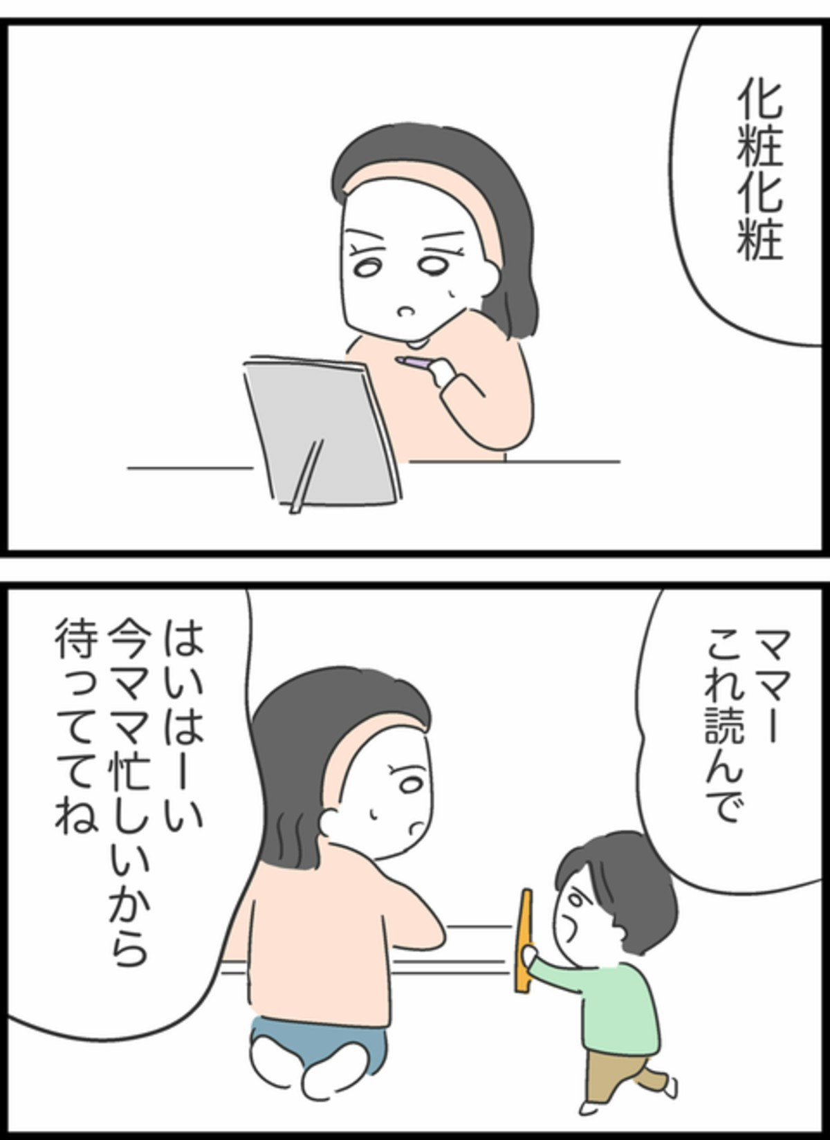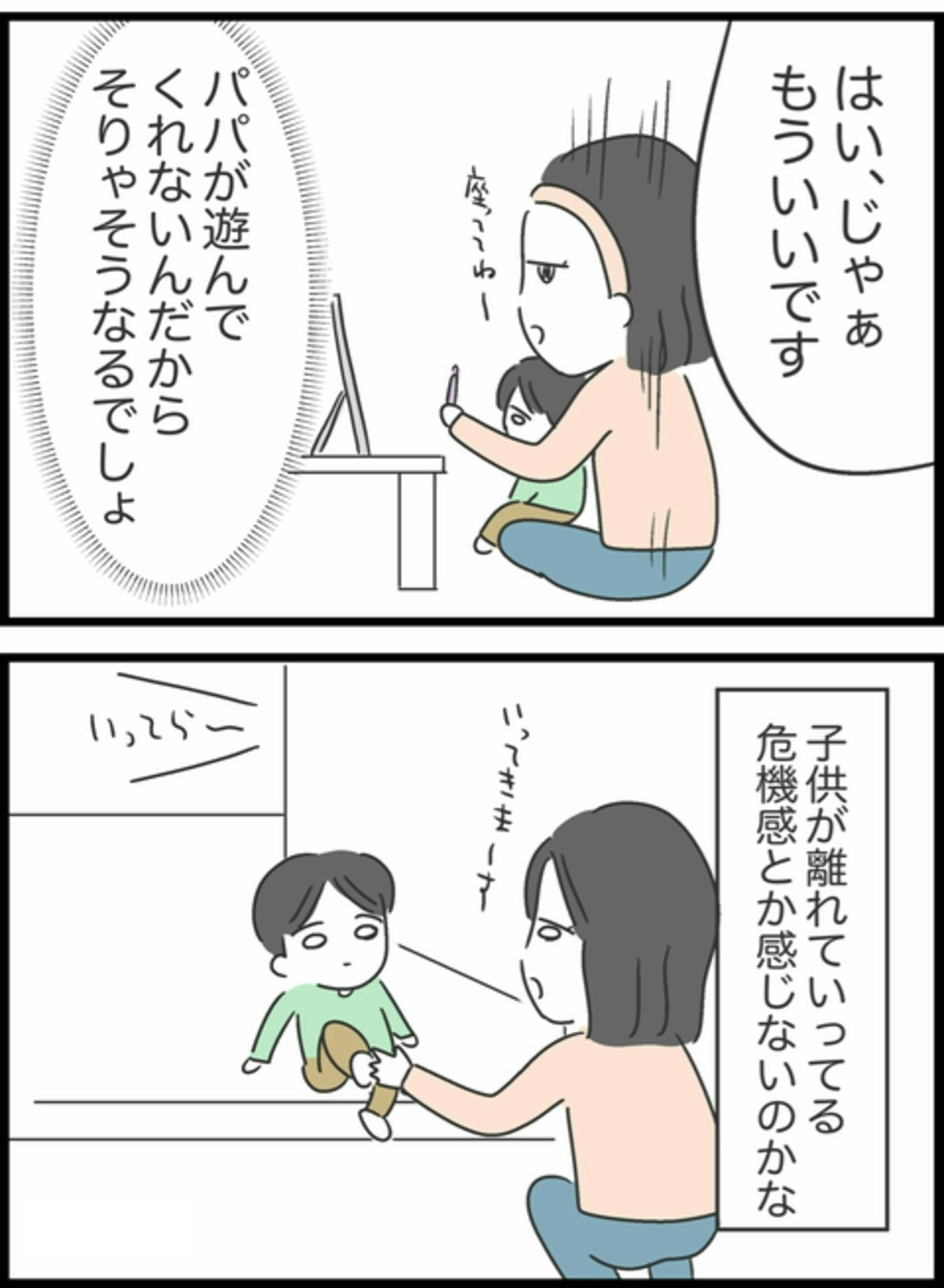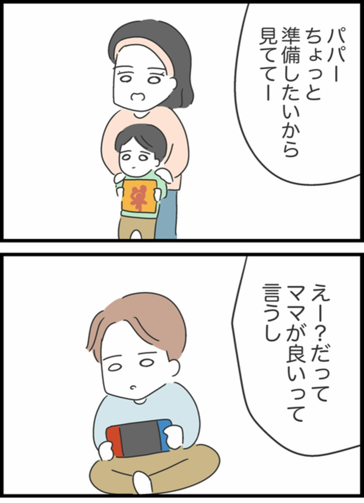 ゆうたを連れて友人との食事に行くことになったようこでしたが、当日身支度をする時ですら協力してくれないしょうたにがっかり。「はい、じゃぁもういいです」と言ったものの…。