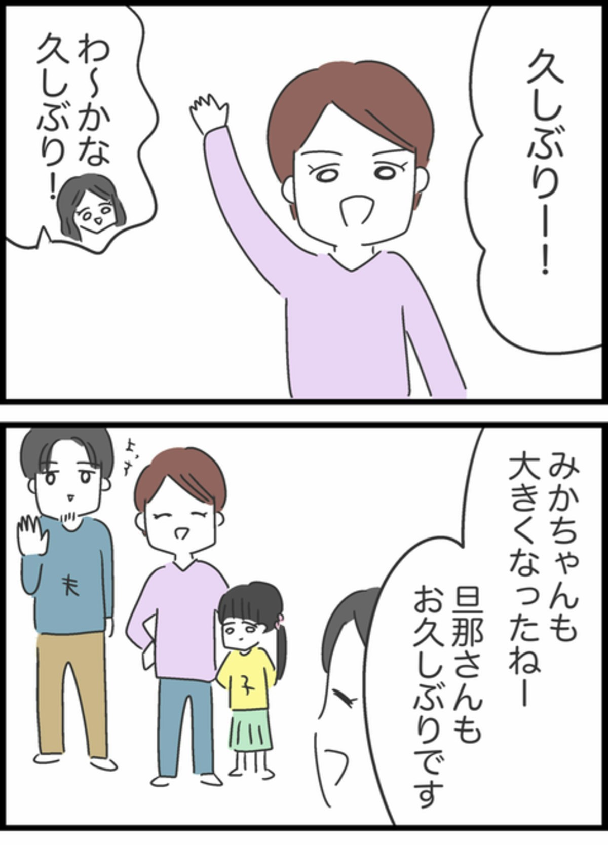 ファミレスで約束していた友人と待ち合わせたようこ。「久しぶりー」と現れた友人は夫と子どもを連れていました。すると友人の夫が「じゃぁオレ2人見てるから」と言い出し…。