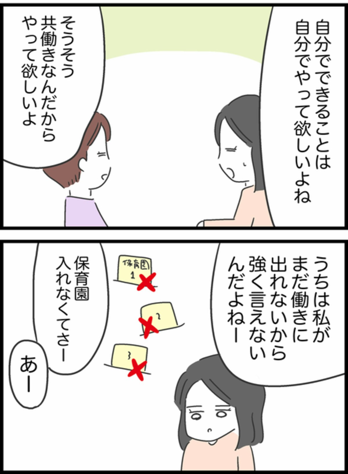 今では、気が利く友人の旦那さんも、過去はしょうたのような行動・発言をしていたようです。現在、ようこは子どもを保育園に預けることができず余計にしょうたに強く言えないといいます。