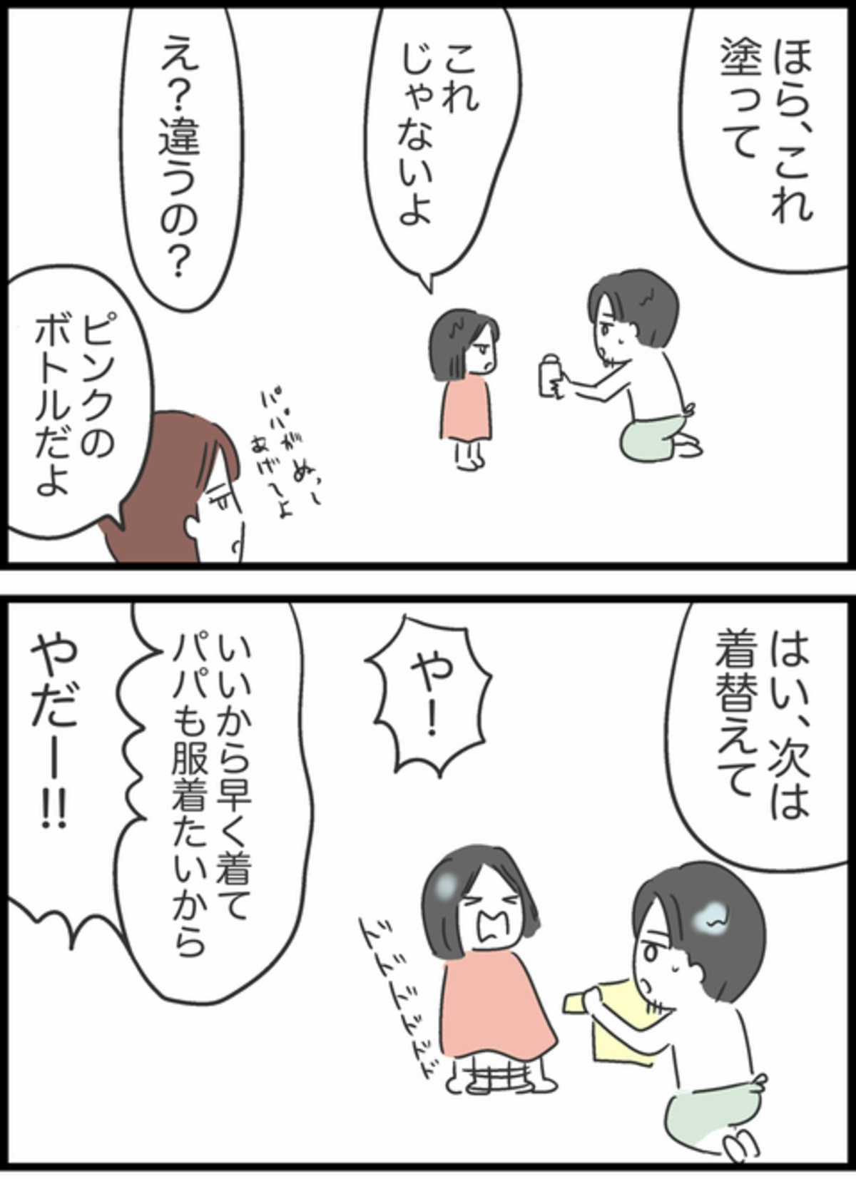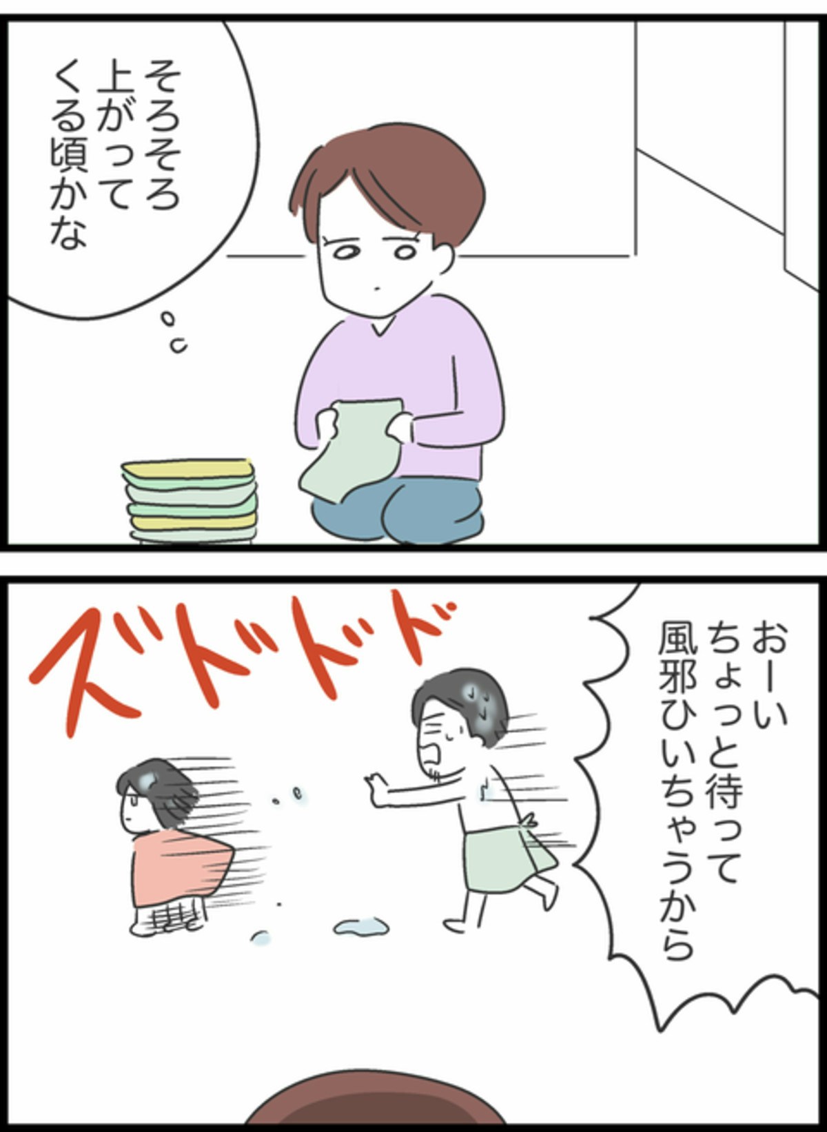 妻から言われ「1人で子どもをお風呂に入れ、最後の保湿や髪乾かしまでする」と決意した夫。いざ実際に入れてみると、今までに経験したことのないトラブルの連発で…。