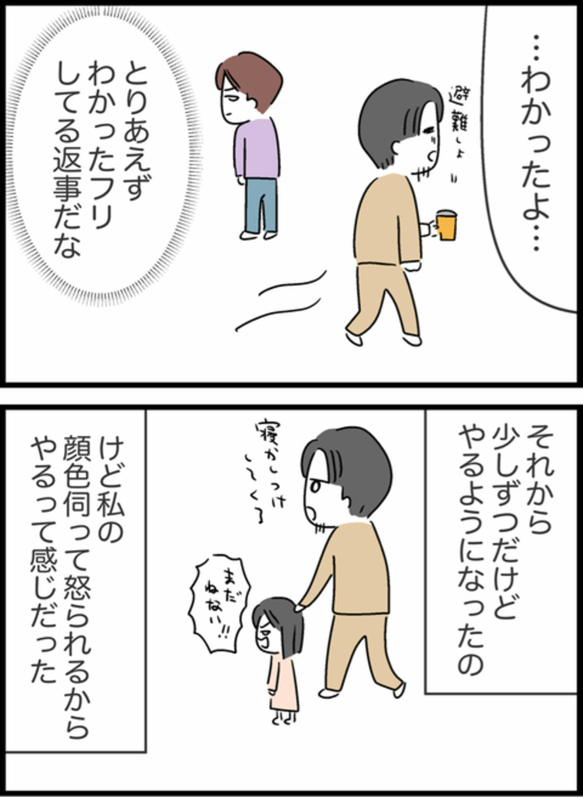 主人公・ようこもその1人。専業主婦として家事も育児もひとりで背負う日々のなかで、夫・しょうたが非協力的であることに、少しずつストレスが募っていきます。「こんなはずじゃなかった」と思う毎日。何度気持ちを伝えても変わらない夫の姿に、「離婚するか、自分が折れるか」と、極端な選択肢に心が傾いていきます。
