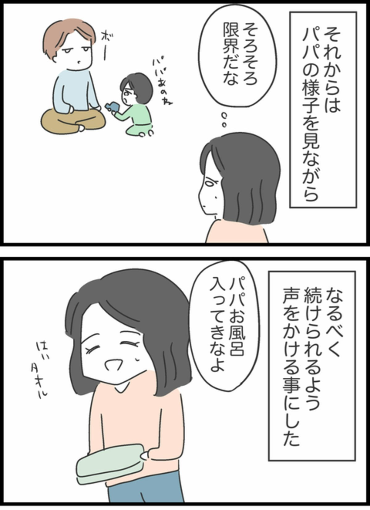家事や子育てを手伝うようになったしょうたに喜んでいたのもつかの間、不機嫌な様子を出してくるようになったため、ようこは疲れを感じていて…。