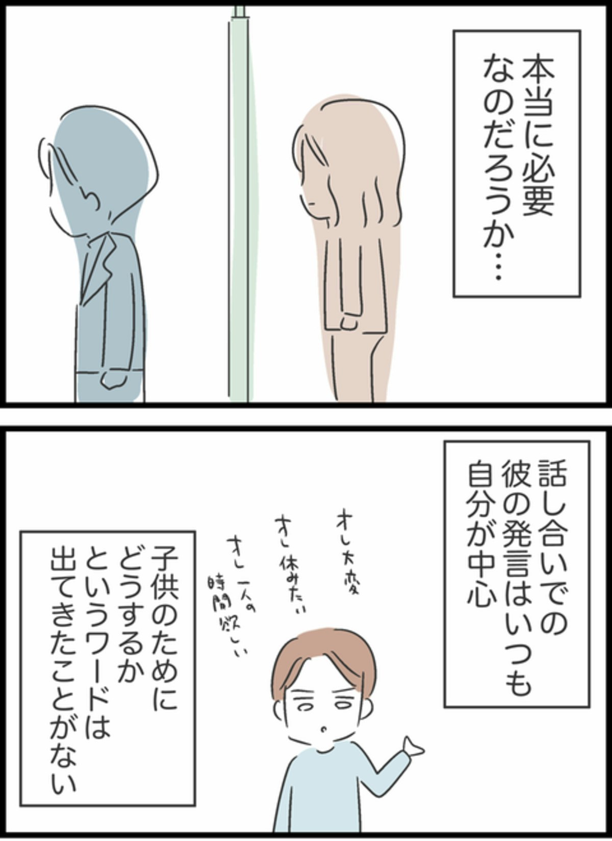 ようこの思いを打ち明けると、「理想論を押し付けるのはやめて」というしょうた。少し協力してくれればいいだけなのに、なかなか伝わりません。