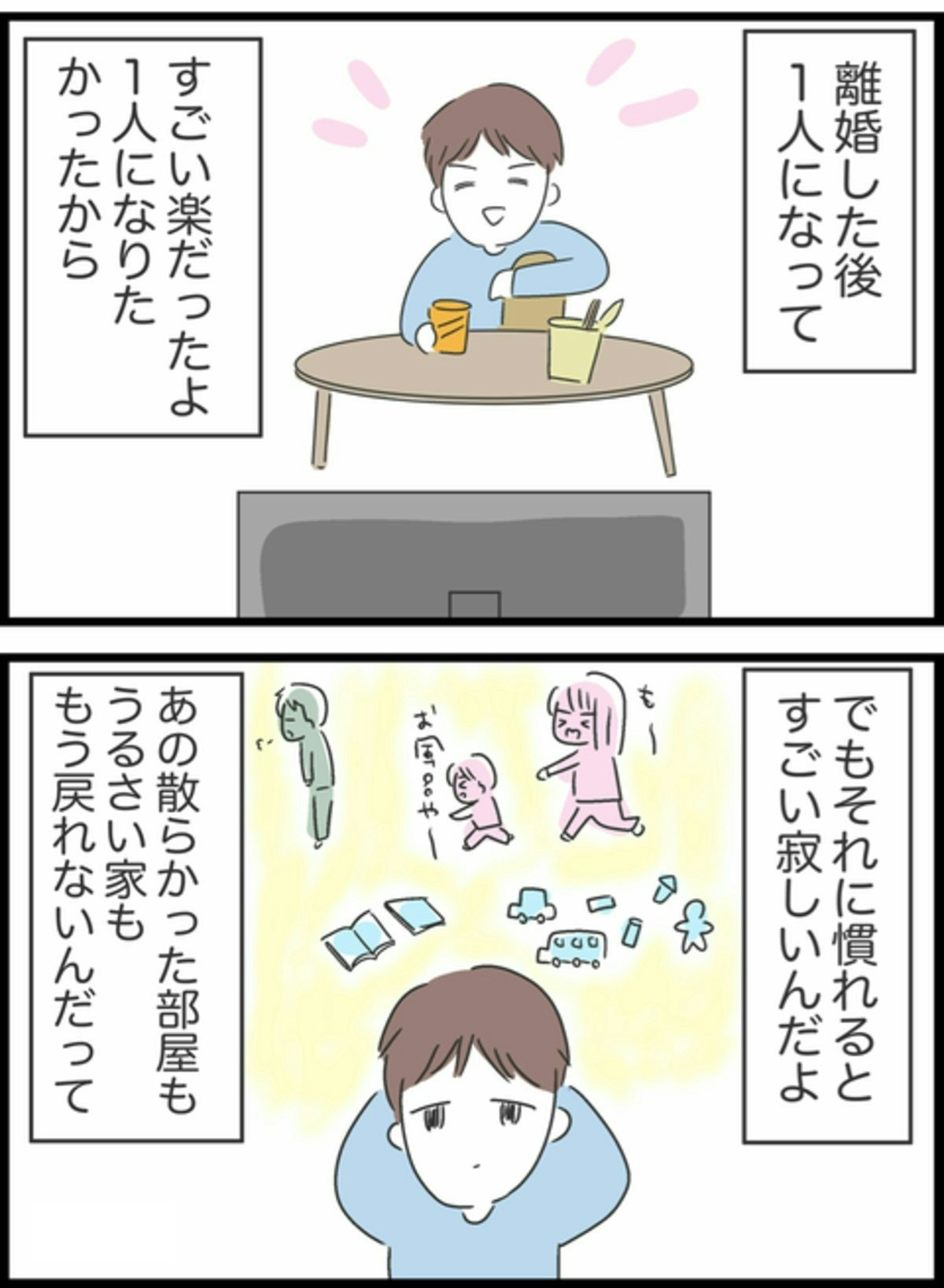 離婚して初めてわかる家族の大切さ。夫が気づいていないだけで、妻はずっと前から悩み、たくさん考えて離婚を決心した…しょうたの家庭と近いものがありますよね。
