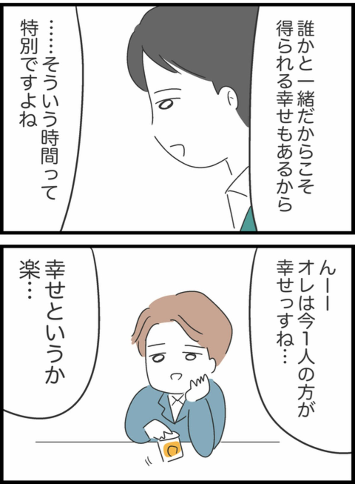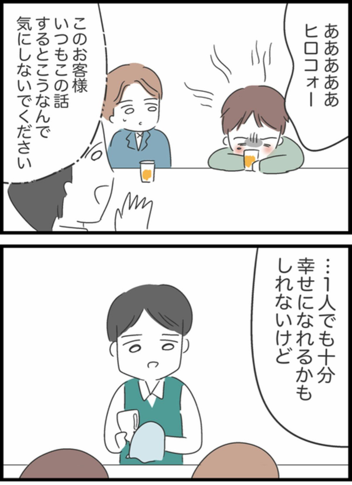 バーの店員が「誰かと一緒だからこそ得られる幸せもあるから…そういう時間って特別ですよね」と言うと、しょうたは「オレは今1人の方が幸せっすね…」と言い…。