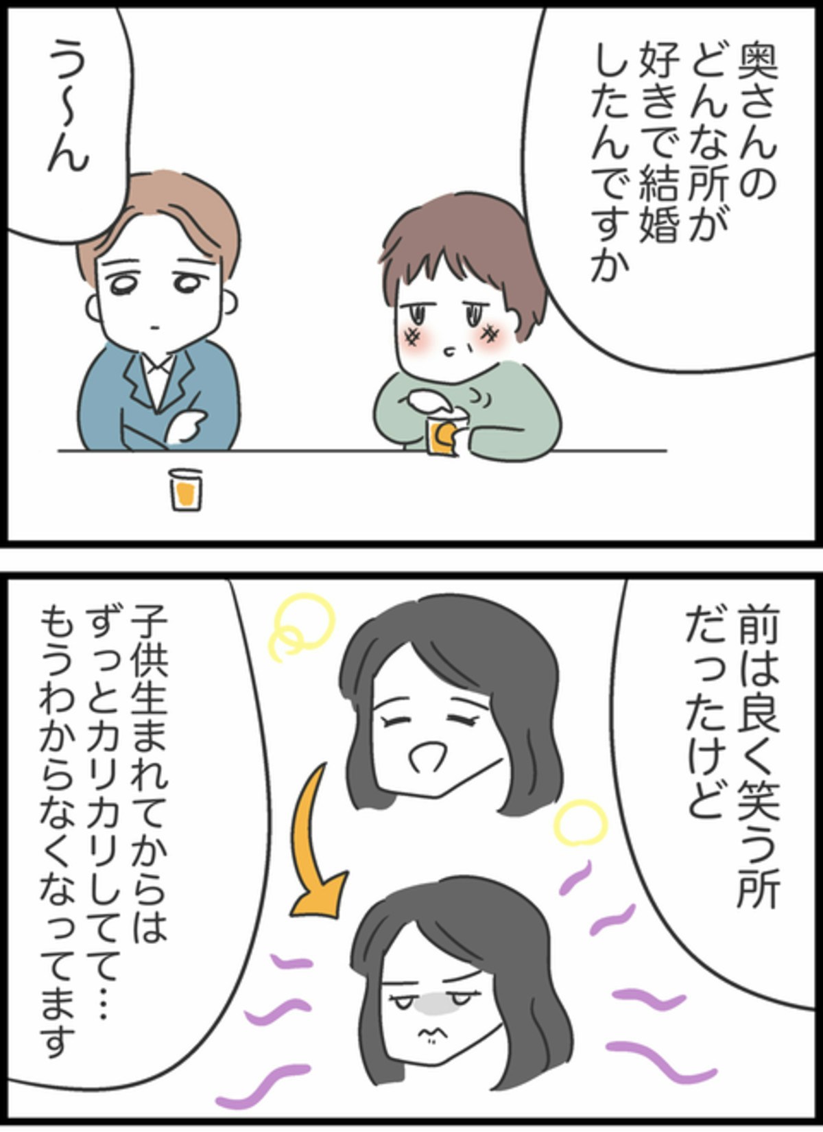 主人公・ようこもその1人。専業主婦として家事も育児もひとりで背負う日々のなかで、夫・しょうたが非協力的であることに、少しずつストレスが募っていきます。「こんなはずじゃなかった」と思う毎日。何度気持ちを伝えても変わらない夫の姿に、「離婚するか、自分が折れるか」と、極端な選択肢に心が傾いていきます。