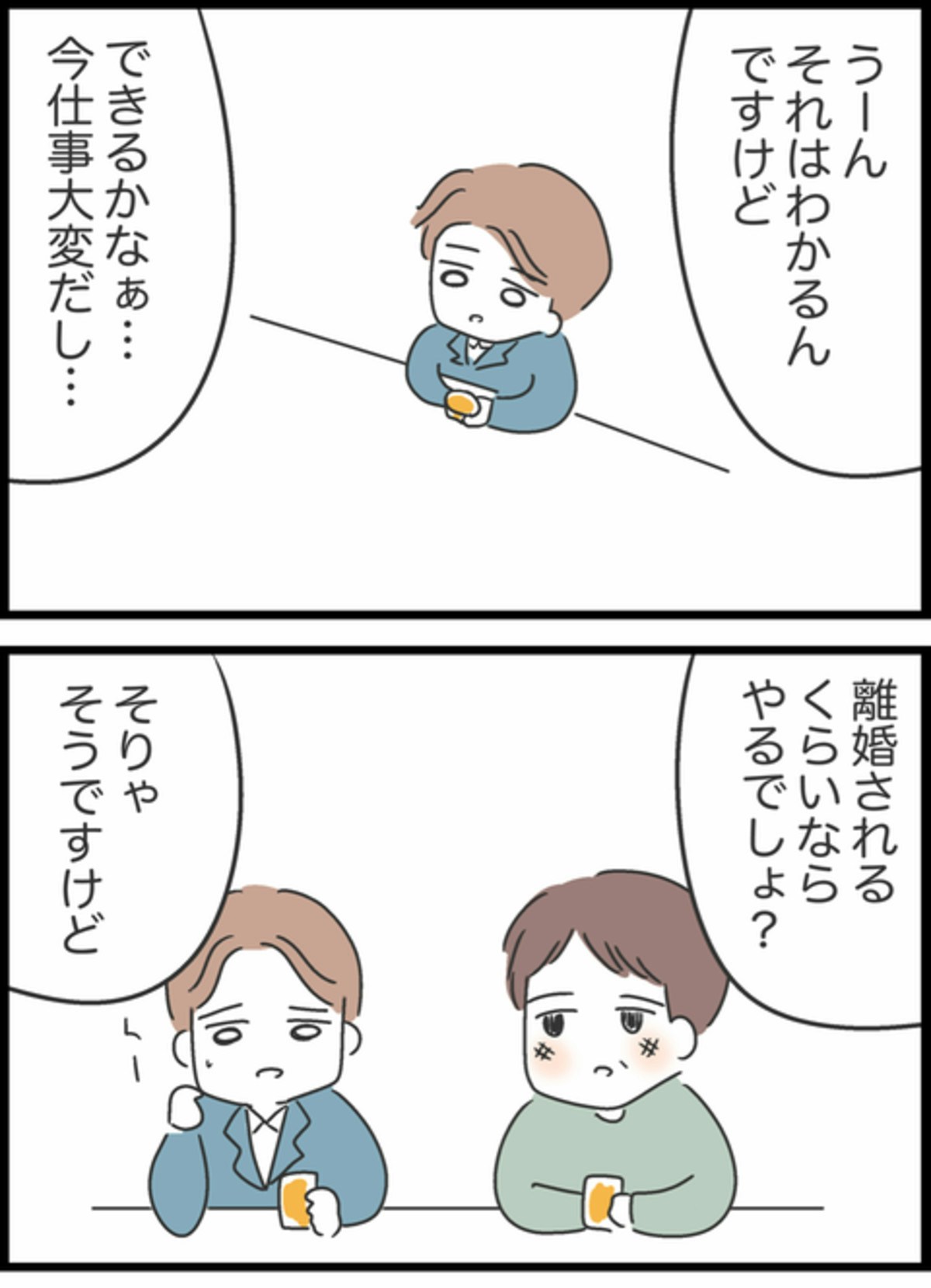 離婚経験のある男性からアドバイスを受けたしょうたでしたが、「うーん、それはわかるんですけど」と素直に受け入れることができず…。