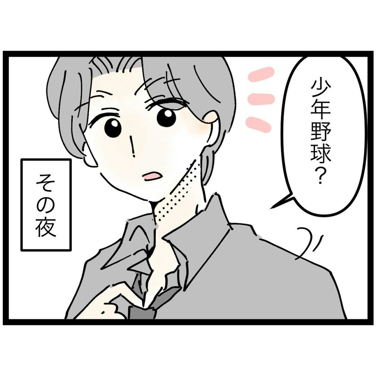 少年野球のチラシを見て、体験入部に行きたいと言い出した息子。さっそくその夜、夫に相談してみます。