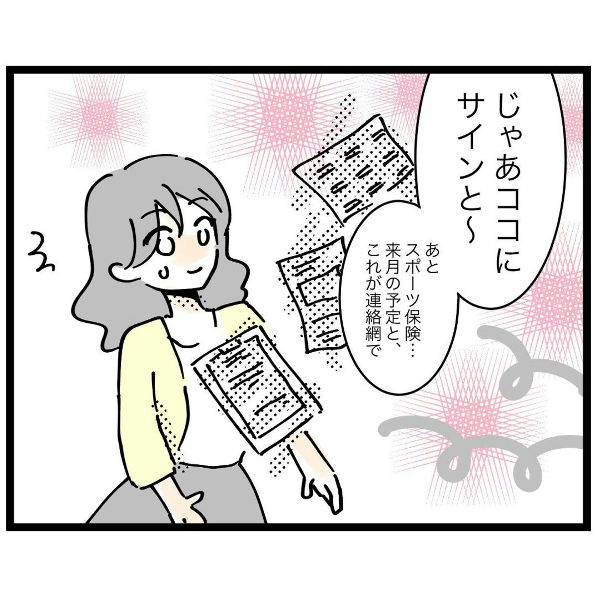 同じ日に体験入部をした他の子たちが次々と入部を決めるなか、流されるようにして入部を決めてしまったもっつんさん。気づけばトントン拍子に手続きが進み、不安ばかりが募っていきます。