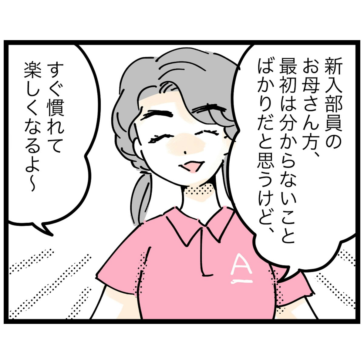 勢いで入部を決めてしまい、不安でいっぱいだったもっつんさん。そんな中、気さくに声をかけてくれた保護者リーダーの存在に救われ、少し前向きな気持ちになれました。