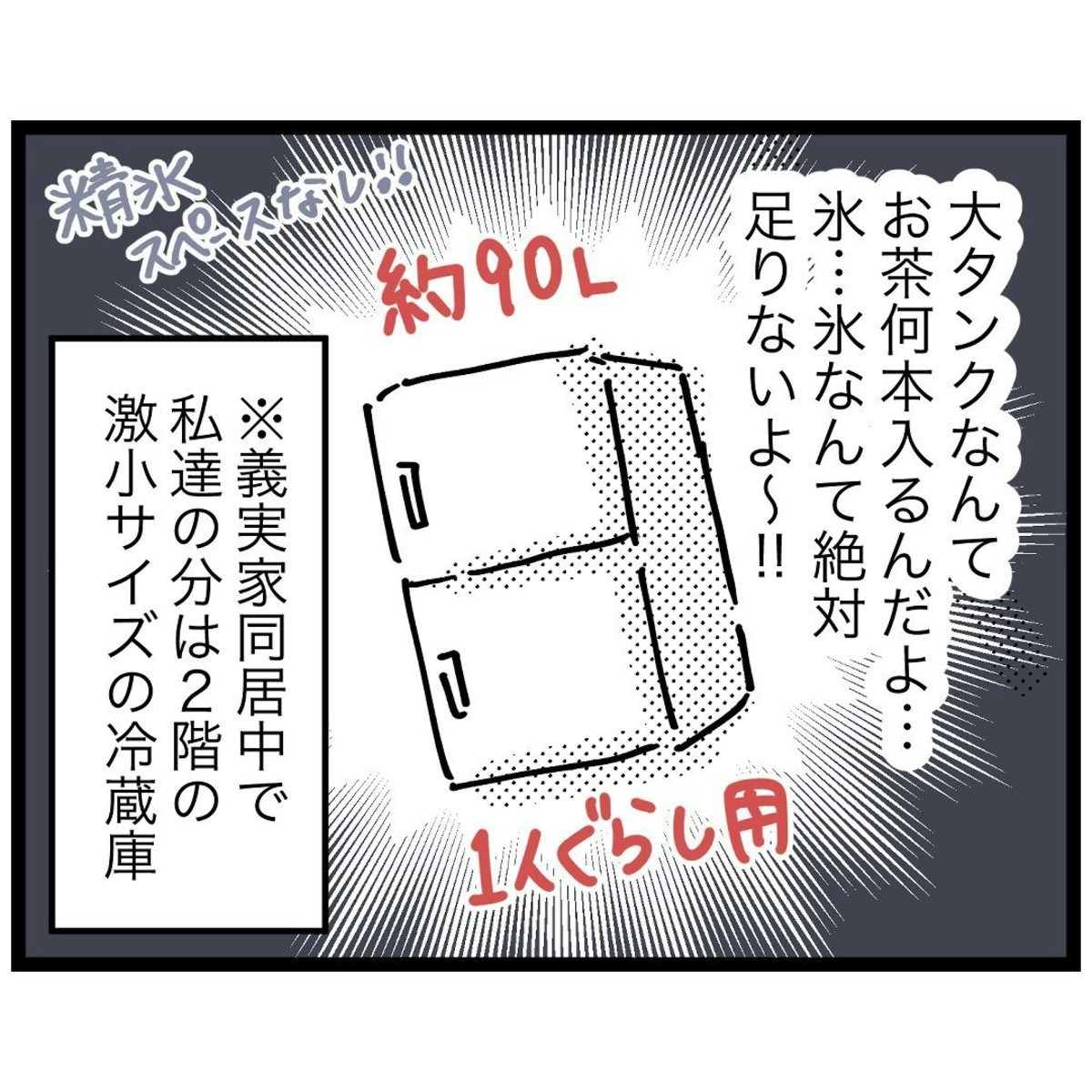 1人暮らしサイズの冷蔵庫では氷の確保もままならず、ジュースやペットボトルの購入、小ポットの用意など想定外の出費が続き、もっつんさんは困惑してしまいました。