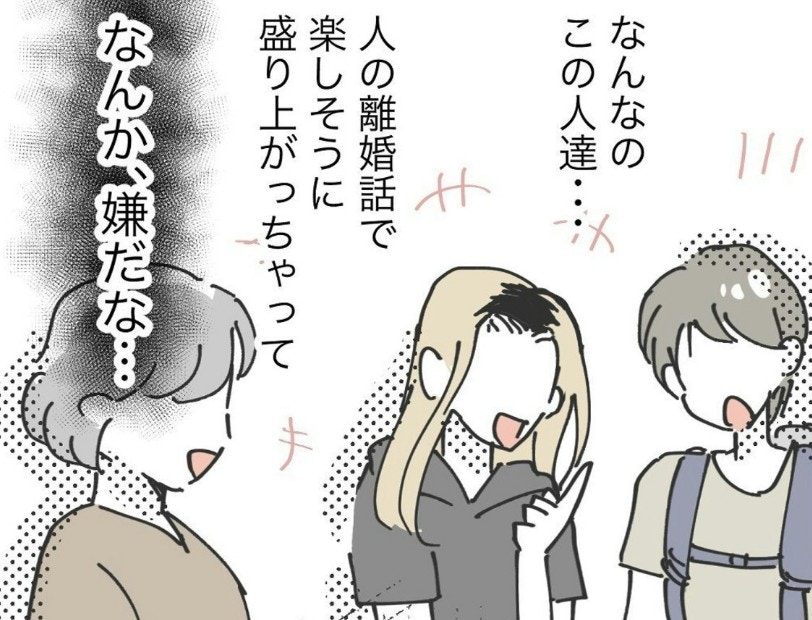 人の不幸話を面白がるような雰囲気に、離婚経験のあるもっつんさんは強い違和感と嫌悪感を覚えました。