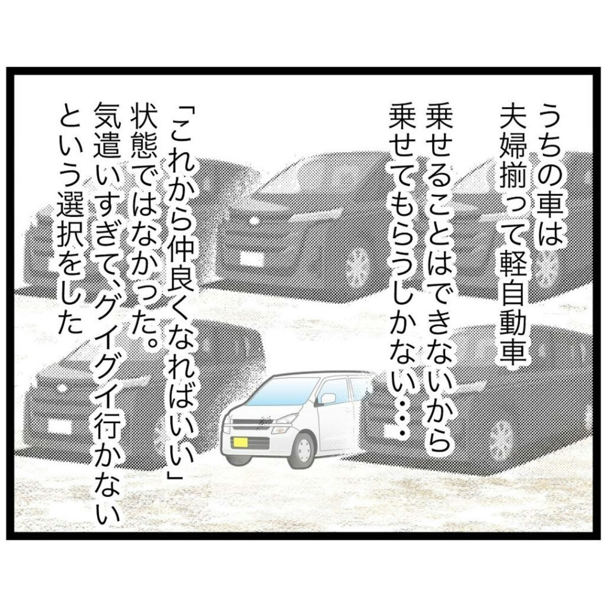 もっつんさん夫婦はそろって軽自動車に乗っているので、乗せてもらうことしかできません。気を使っているうちに、周囲はどんどん家族ぐるみで仲良くなっていきます。