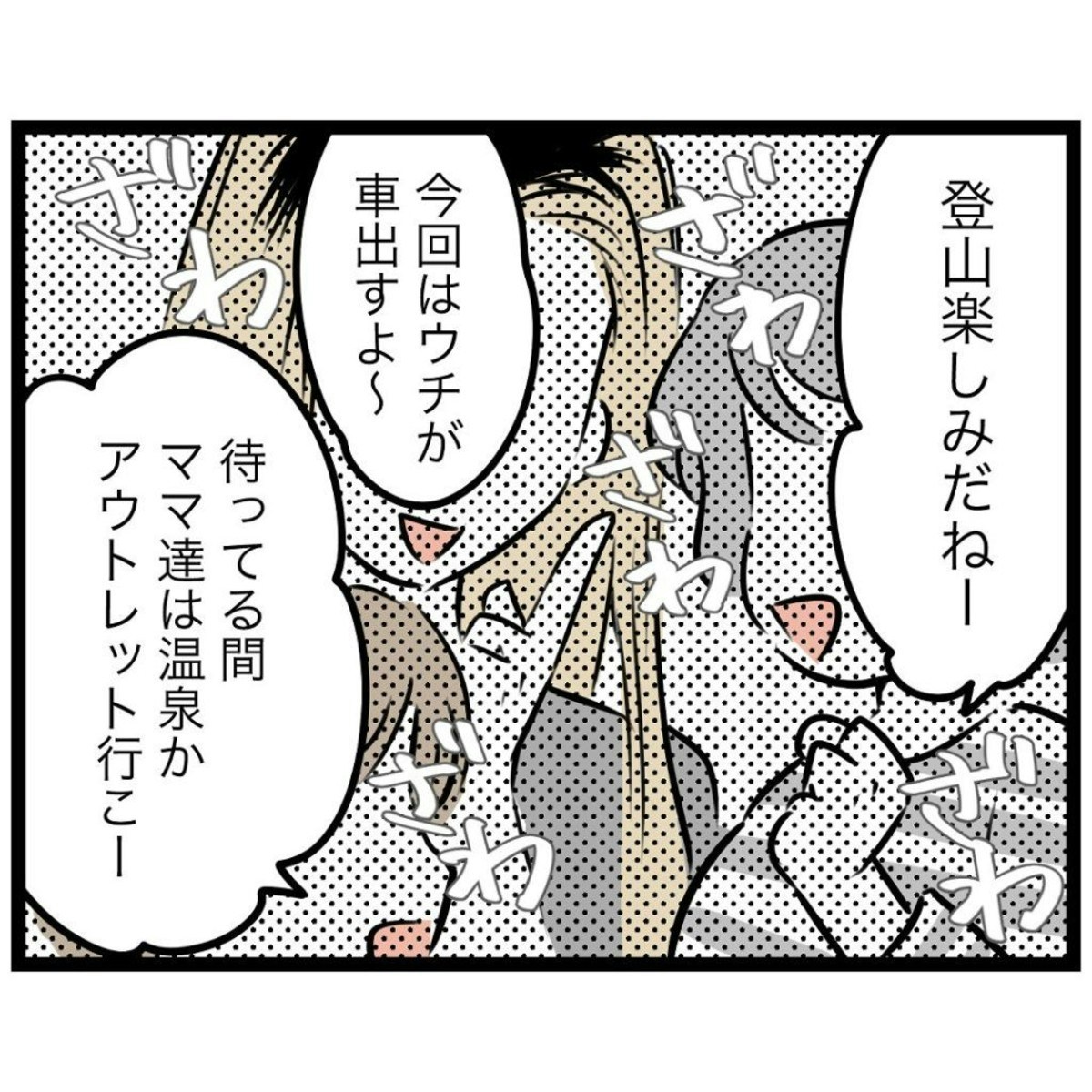 他のママさんたちに目を向けると、楽しそうに登山訓練の日の計画を立てています。もっつんさんが考えたとおり「できるだけ」というのは、ほぼ全員が父親同伴ということのようです。