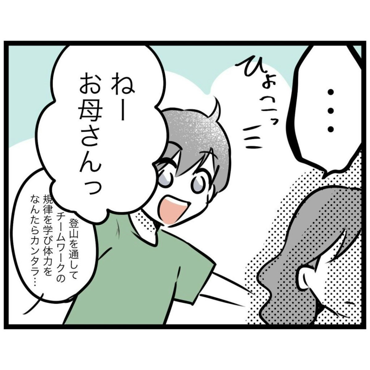 突然の知らせに顔が引きつるもっつんさんとは対照的に、息子・タクは「登山楽しみだね」と笑顔を見せます。