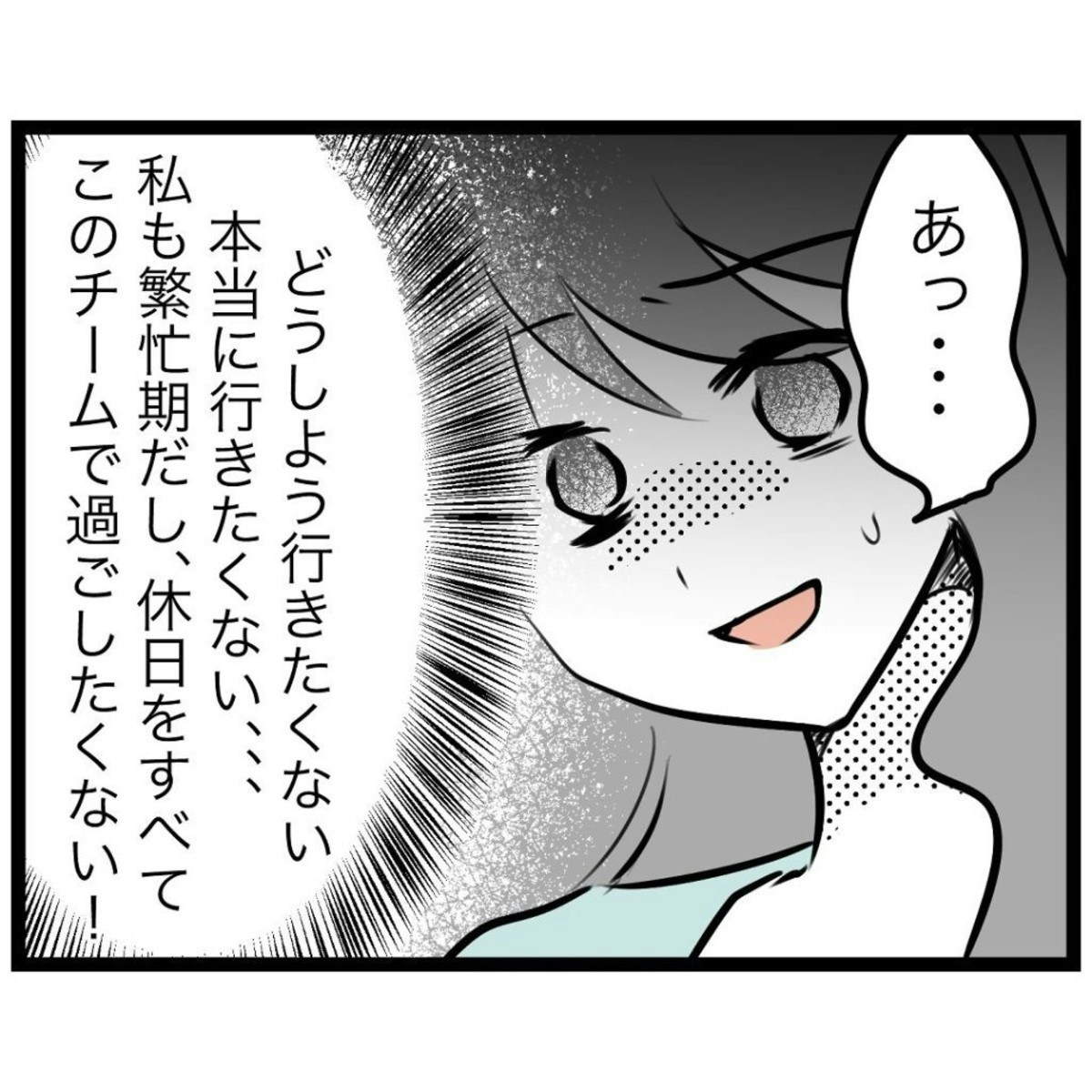 練習試合の打ち上げに参加したもっつんさんは、他の保護者と打ち解けることができずに居心地の悪さを感じていました。そんな中、チーム部長から登山訓練をすると発表され、もっつんさんの気持ちはますます重くなっていきます。