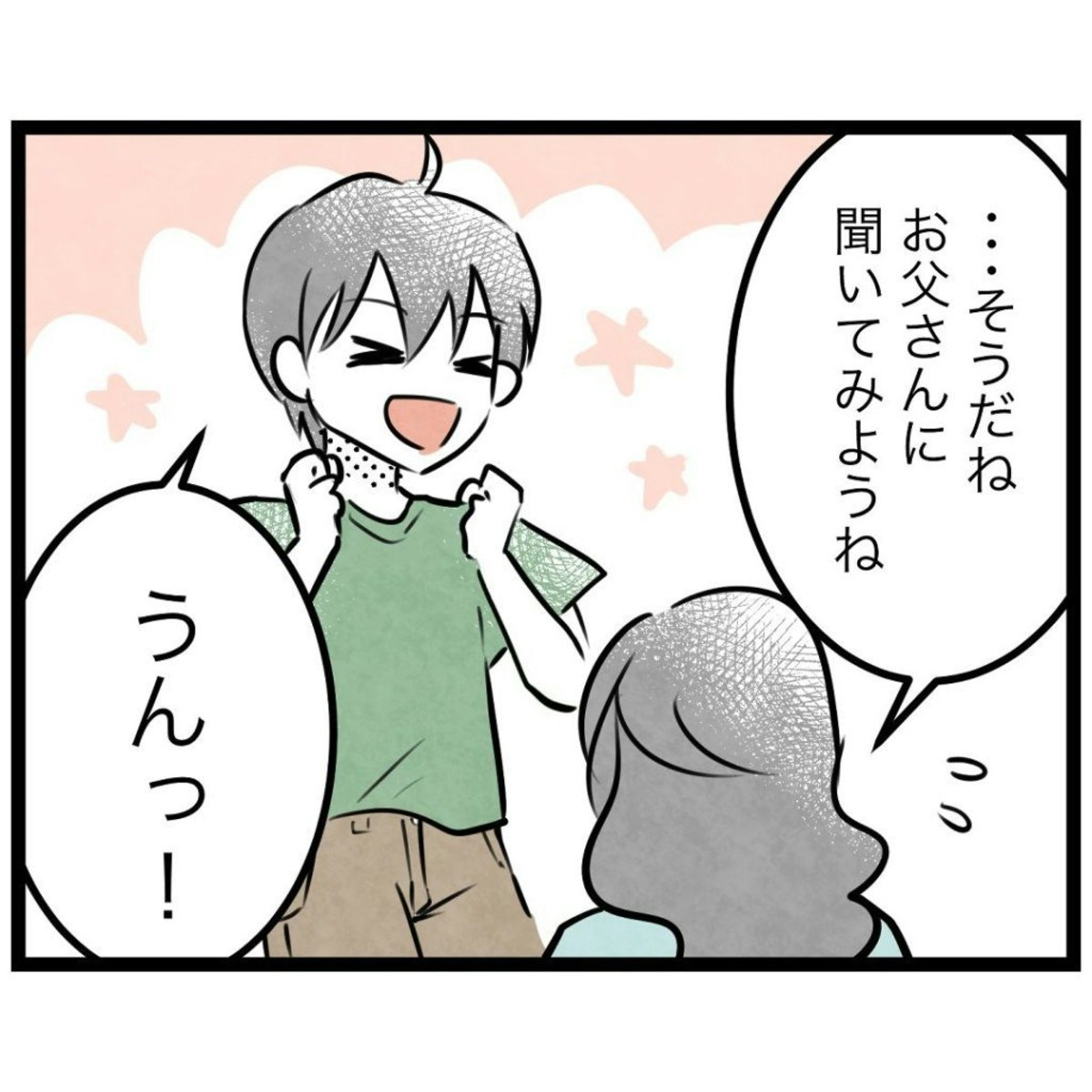 登山訓練を楽しみにしている息子・タクと、気が重い母・もっつんさん。夫の参加は厳しいかもしれませんが、わが子をガッカリさせないよう、「お父さんに聞いてみようね」と言っておきます。