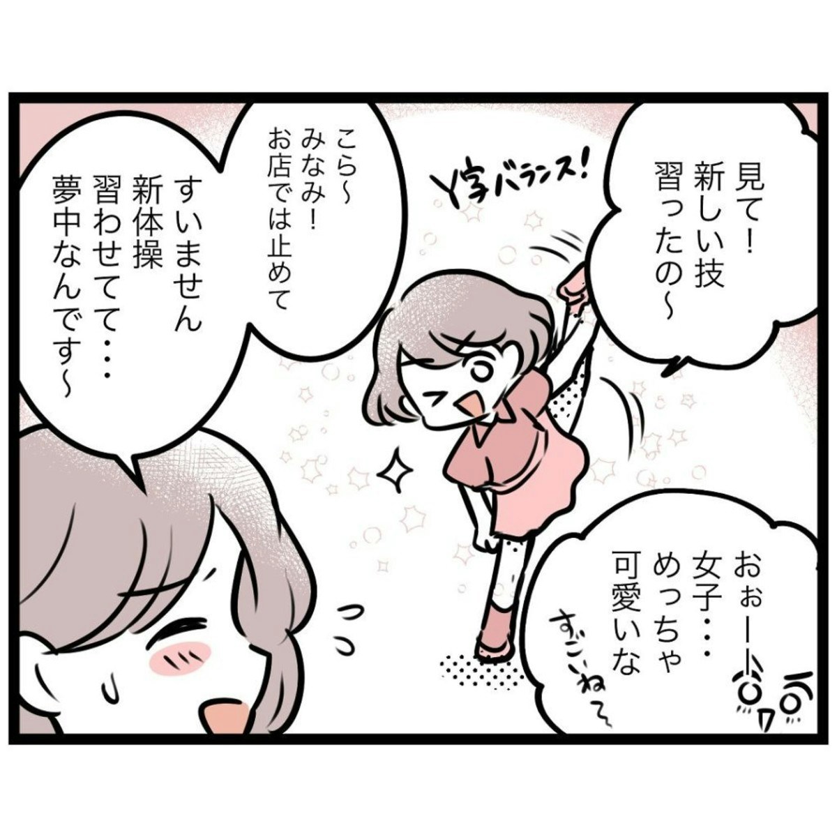 スーパーで偶然出会ったのは、保育園から息子・タクと一緒のクラスメイト・みなみ親子でした。みなみは新体操を習っているそうで、話題は習い事のことへ。