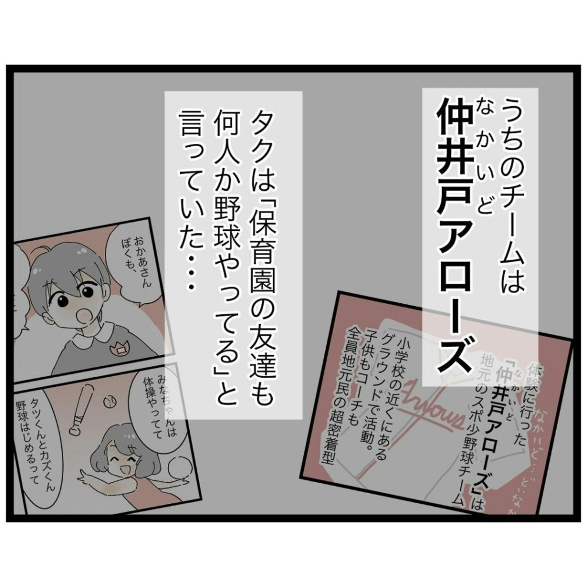 息子・タクは「保育園の友達が野球をやっている」と言っていたのに、チームメイトには顔見知りがおらず不思議に思っていました。
