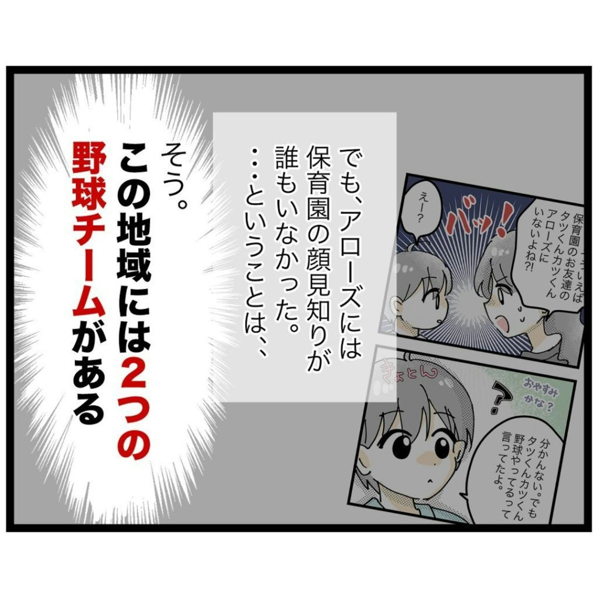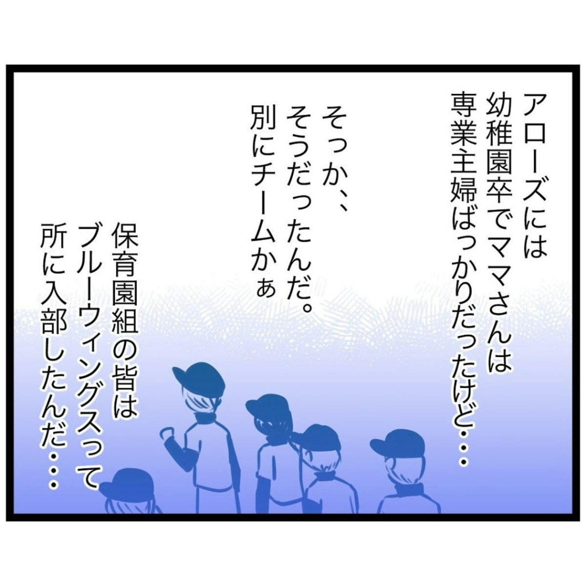 もっつんさんが住む地域には、2つのスポ少野球チームがあり、「ブルーウィングス」には主に保育園出身の子どもが、「仲井戸アローズ」には幼稚園出身の子どもが所属しているそうです。自分だけが知らなかったことに、ショックをうけるもっつんさん。