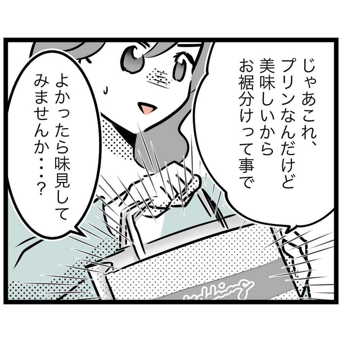 一方的にプリンを渡してしまい、かえって気を悪くさせたのではと不安になったもっつんさん。